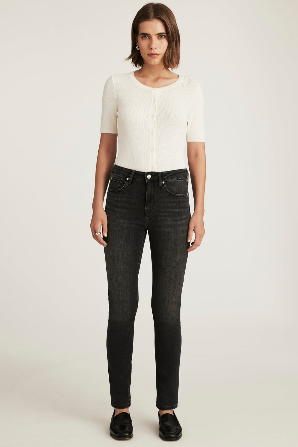 Inspiré du jean préféré de votre petit ami, Kathleen perfectionne le look décontracté avec une silhouette qui vous ressemble. Une taille mi-haute confortable, une jambe légèrement fuselée et un ourlet retroussé offrent une sensation de confort et de décontraction. Ce modèle est disponible dans un délavage noir fumé avec un effet délavé subtil.