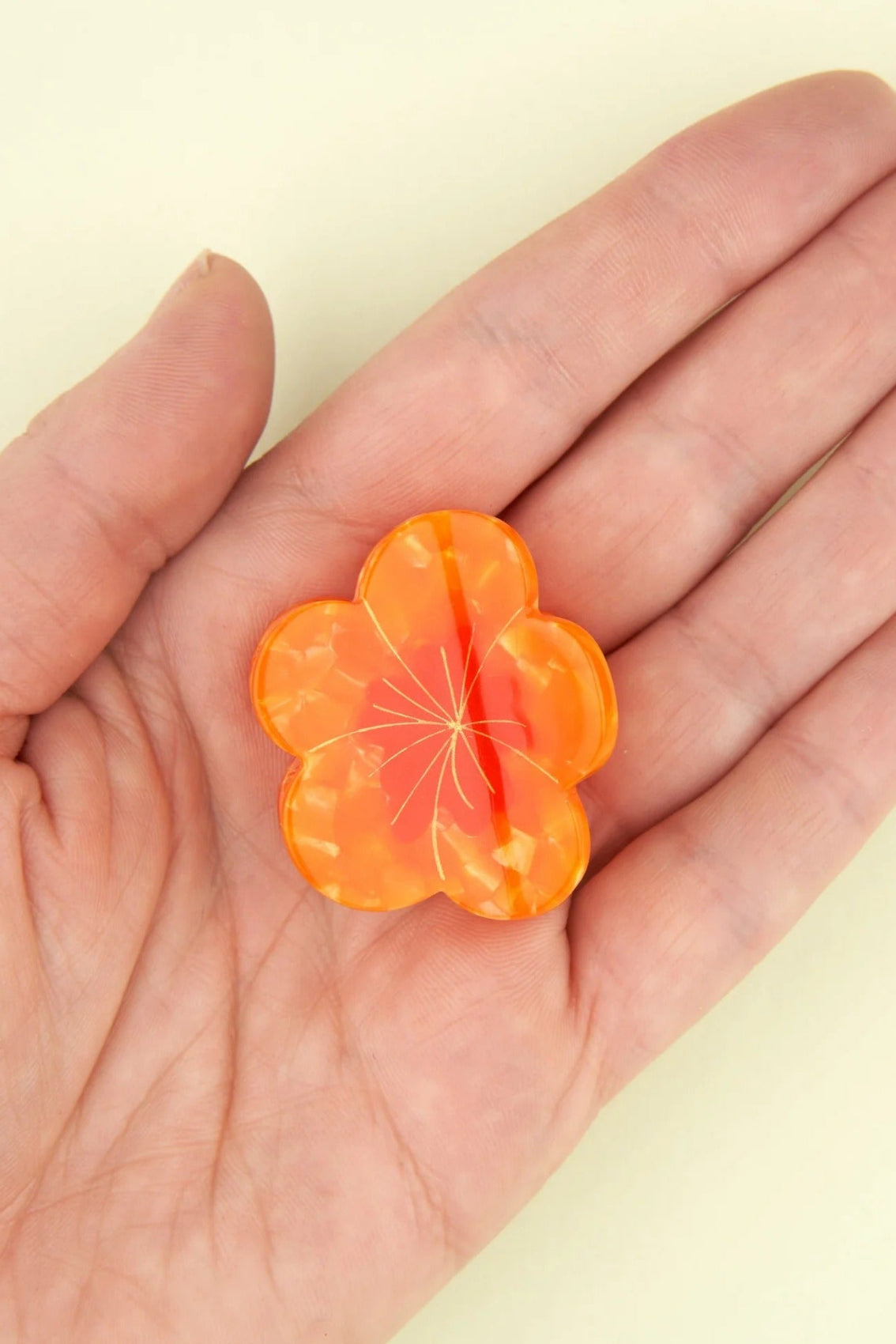 Tiens donc, qu’est-ce qui a encore poussé dans le jardin de Coucou Suzette ? Une petite capucine de toute beauté ! On craque pour cette mini fleur orange au cœur rouge qui se glisse dans tous les sacs et qui nous coiffe en un mouvement.
