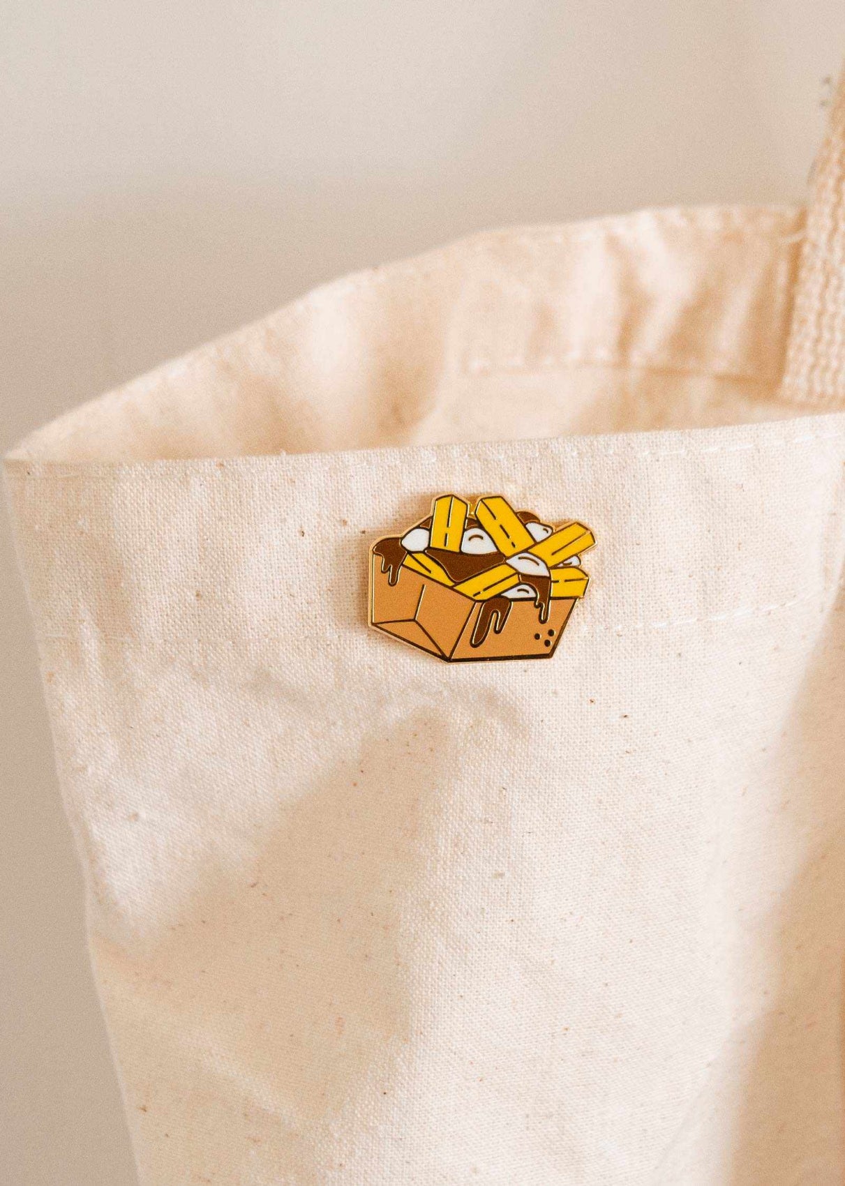 Célébrez votre amour de la poutine avec cette épinglette ludique signée MIMI & AUGUST. Inspirée par le plat emblématique québécois, elle capture l'essence du comfort food avec style. Parfaite pour personnaliser un manteau, un sac ou un accessoire, cette pièce designée à Montréal est un cadeau idéal pour les passionnés de cuisine québécoise et les amateurs de frites.