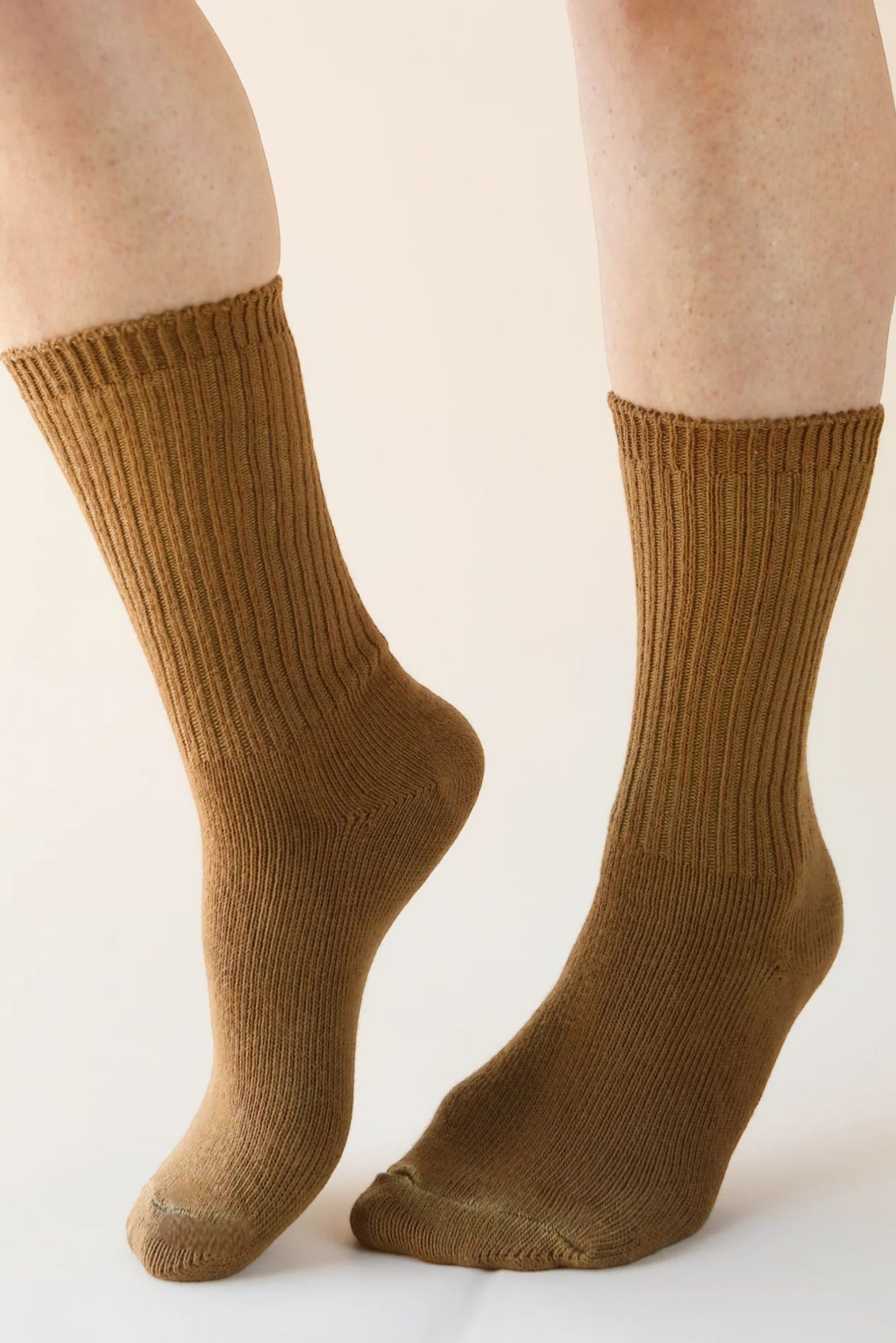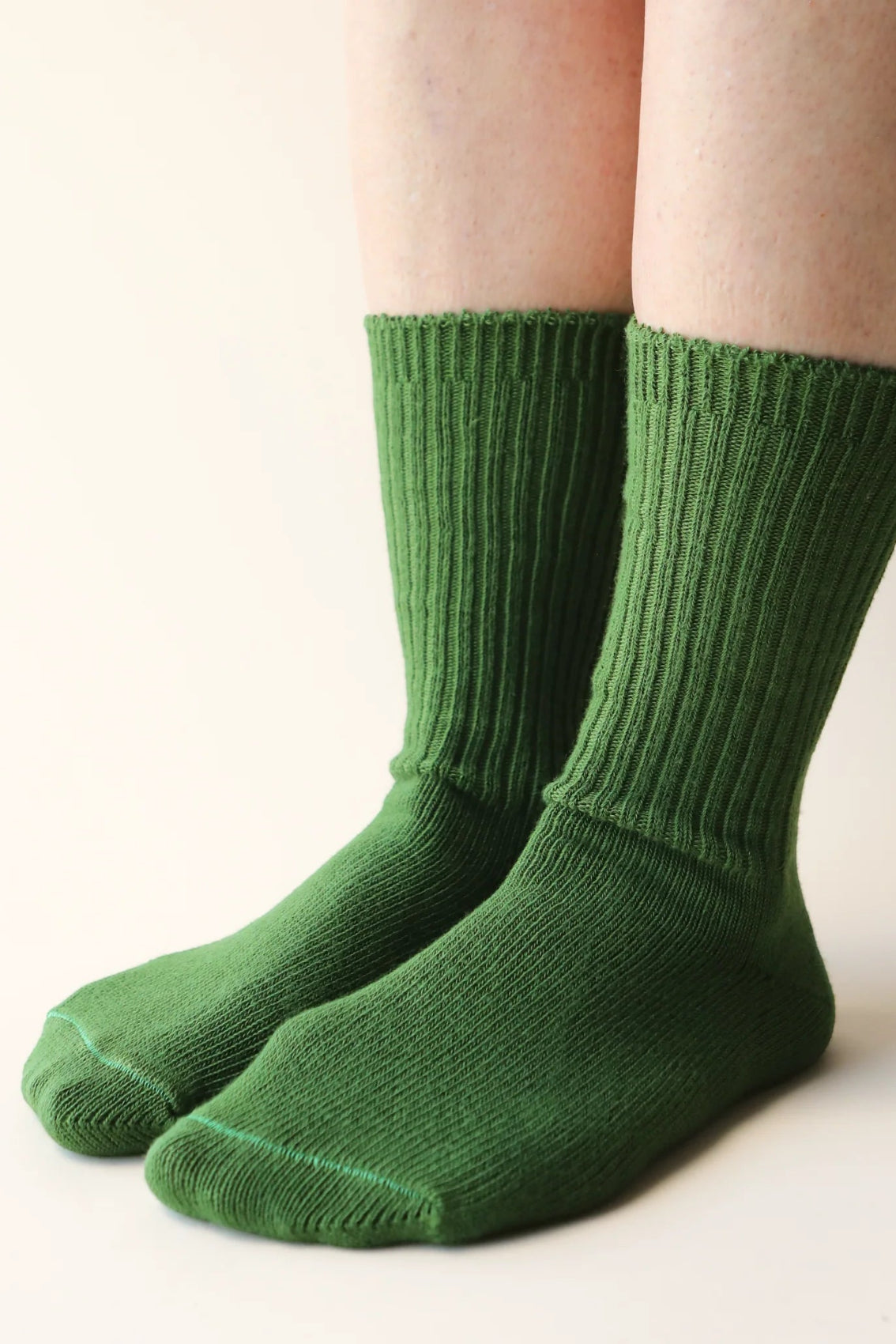 Les chaussettes en coton teint OKAYOK sont fabriquées dans une petite usine près de Toronto et teintes à seulement 40 km de leur studio. Les couleurs sont en édition limitée. Elles douces, respirantes et très durables.