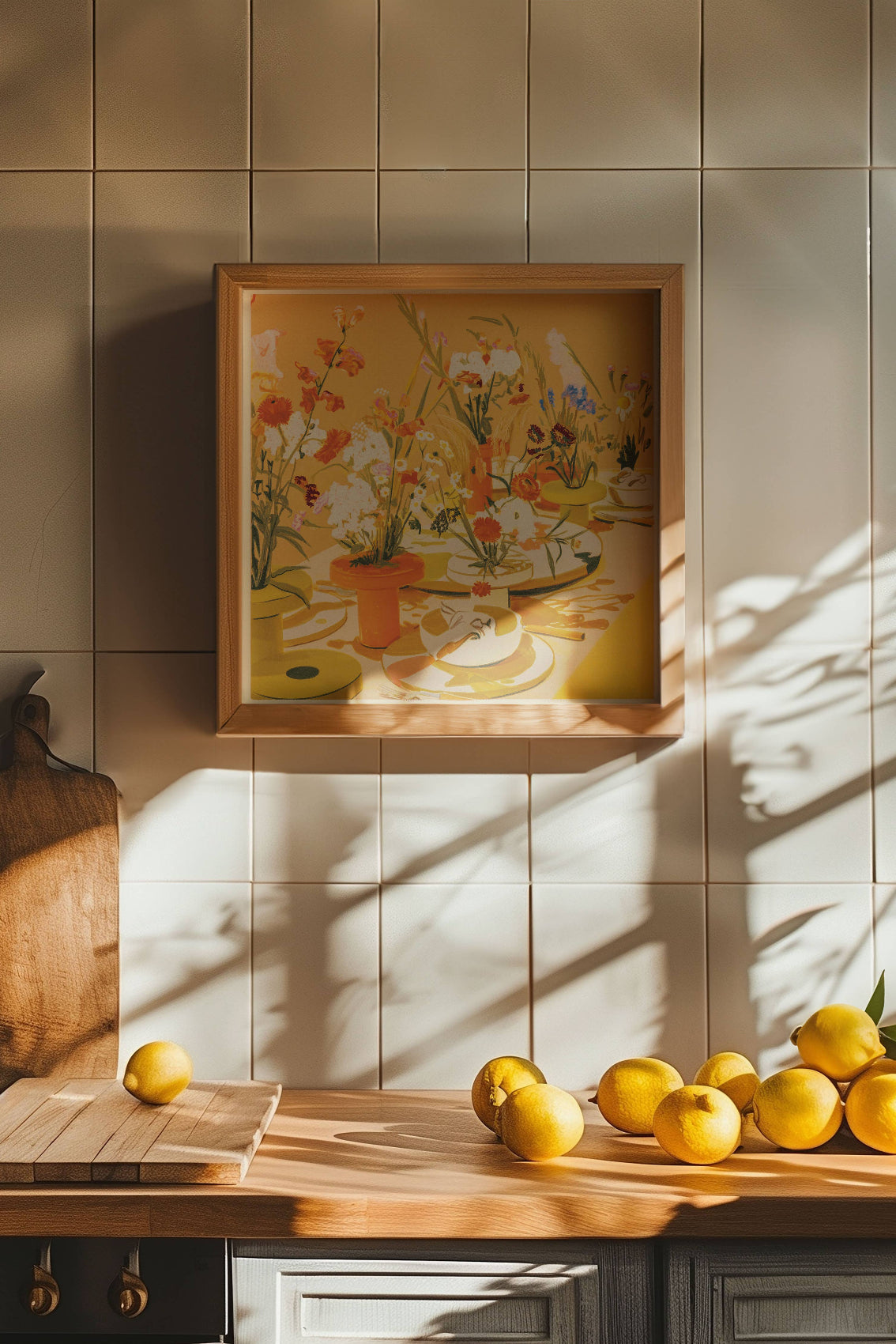 Impression artistique de tablescape floral abstrait