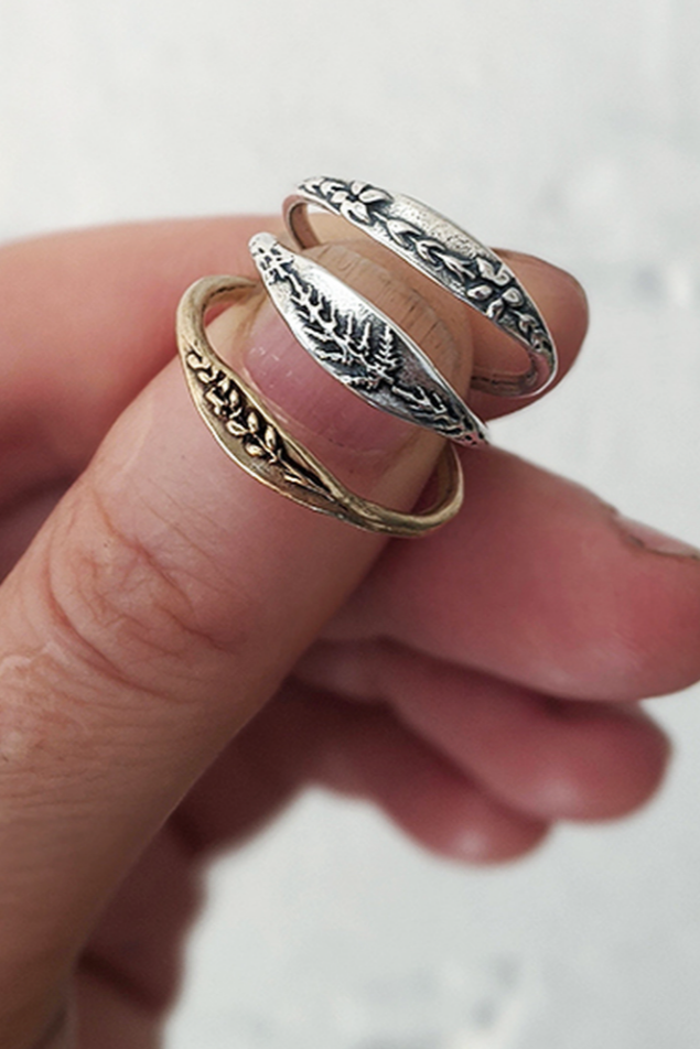 • Bague Forget-Me-Not fabriquée à la main en argent sterling ou en bronze massif