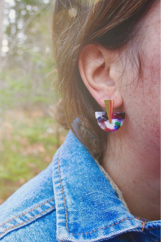 BOUCLE D'OR Boucles d'Oreilles Demi Cercle Petit - Fleur de Cerisier Bleu