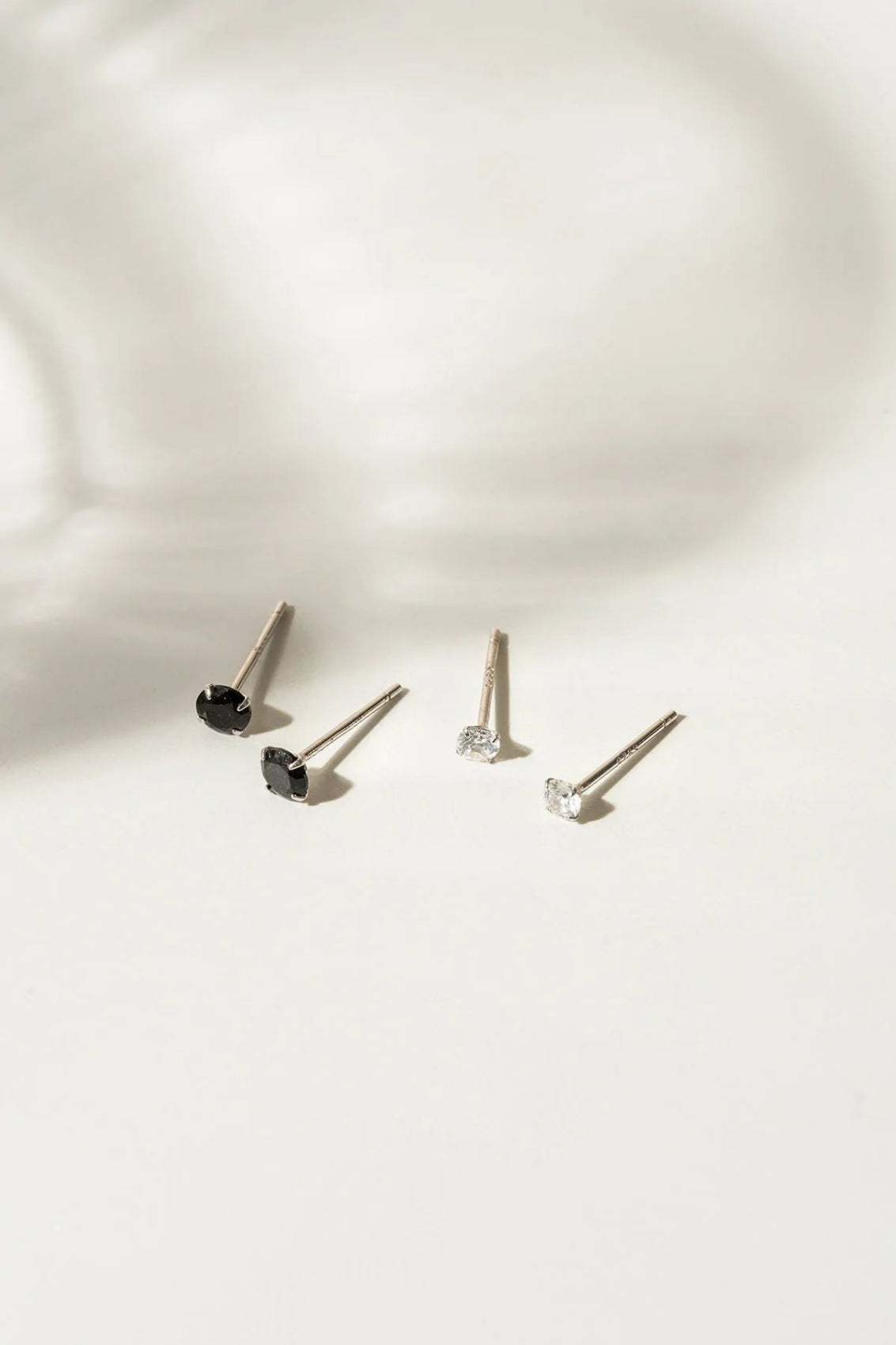 Boucles d’oreilles de type clous. La version noir est légèrement plus grande que la version cristal.