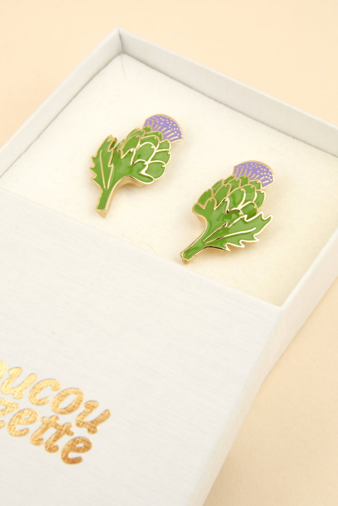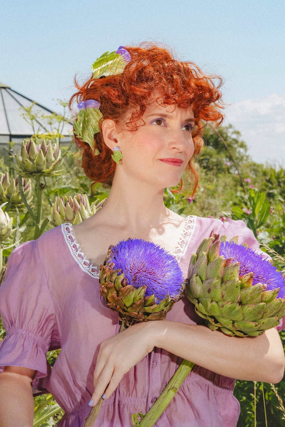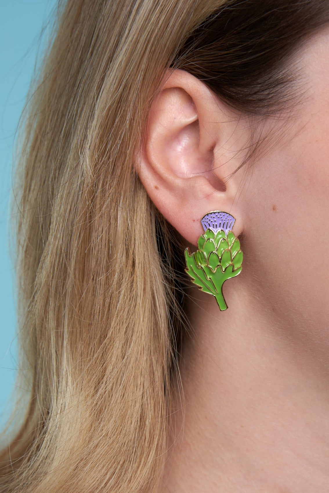 Spécial dédicace à la plus belle des fleurs du potager, nous avons nommé la fleur d’artichaut ! Elle nous z’envoute par sa couleur violette sortie d’un film et son incroyable parfum de miel. Il fallait bien une paire de boucles d’oreilles pour la célébrer, façon bijou vintage déniché en brocante.