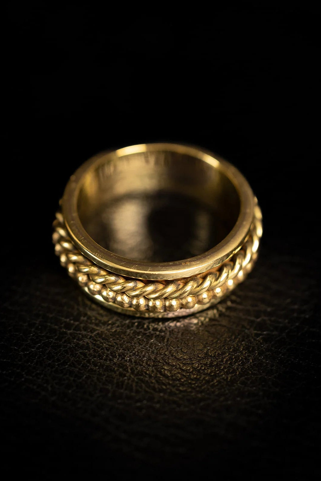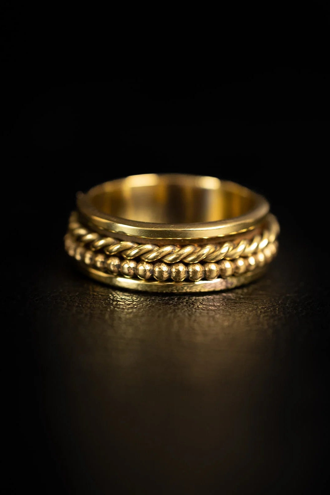 Une bague de méditation conçue pour cultiver la pleine conscience au quotidien. Son anneau intérieur tourne délicatement dans l'anneau extérieur, invitant à des gestes apaisants et répétitifs qui favorisent la détente. Alliant élégance intemporelle et fonctionnalité méditative, elle devient un compagnon discret pour les moments de calme et de recentrage. Un accessoire qui transforme chaque rotation en instant de sérénité.
