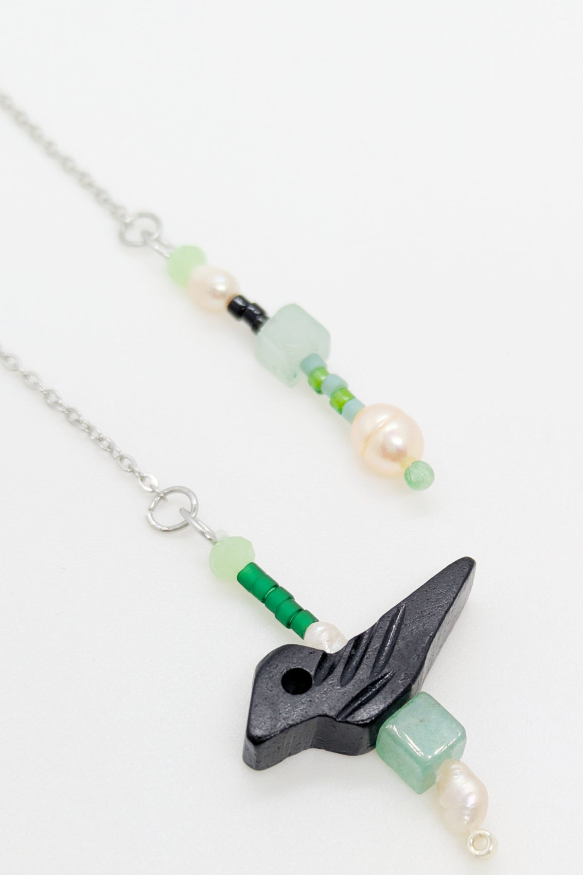 Boucles fils avec petits oiseaux sculptés en os, perles d'eau douce, Jade, perles Miyuki