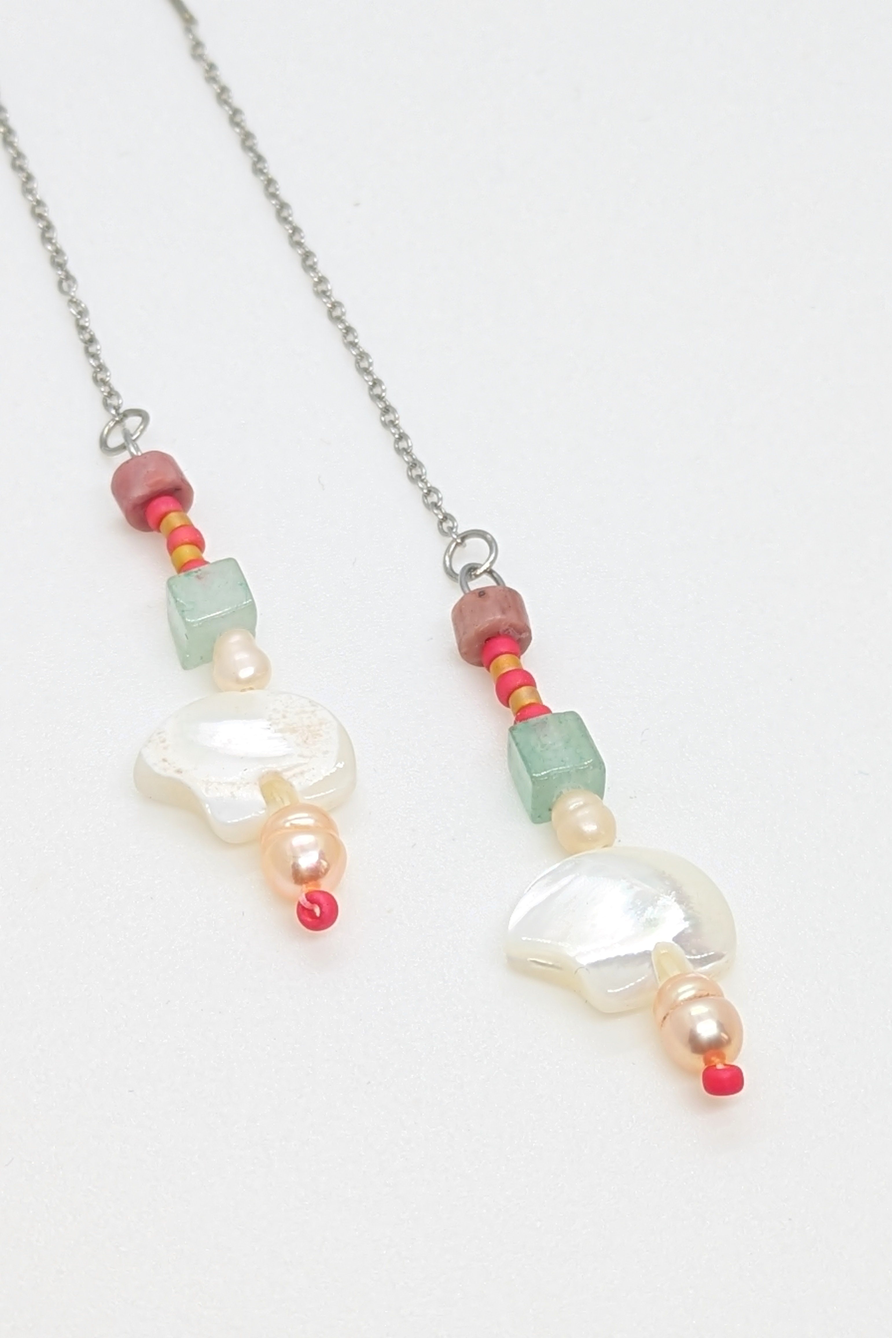 Boucles fils avec petits oiseaux sculptés en os, perles d'eau douce, Jade, perles Miyuki