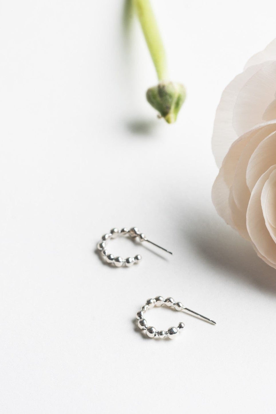 Boucles d'oreilles perlées délicates pour un tour du chapeau ! Fabriquées à la main en argent sterling, ces petites créoles sur un clous sont un ajout délicat à n'importe quel look. Ils sont faits pour être portés tous les jours et ne jamais être enlevés. Obtenez un look minimaliste-chic en les associant à nos minies boucles d'oreilles en perles Omega.