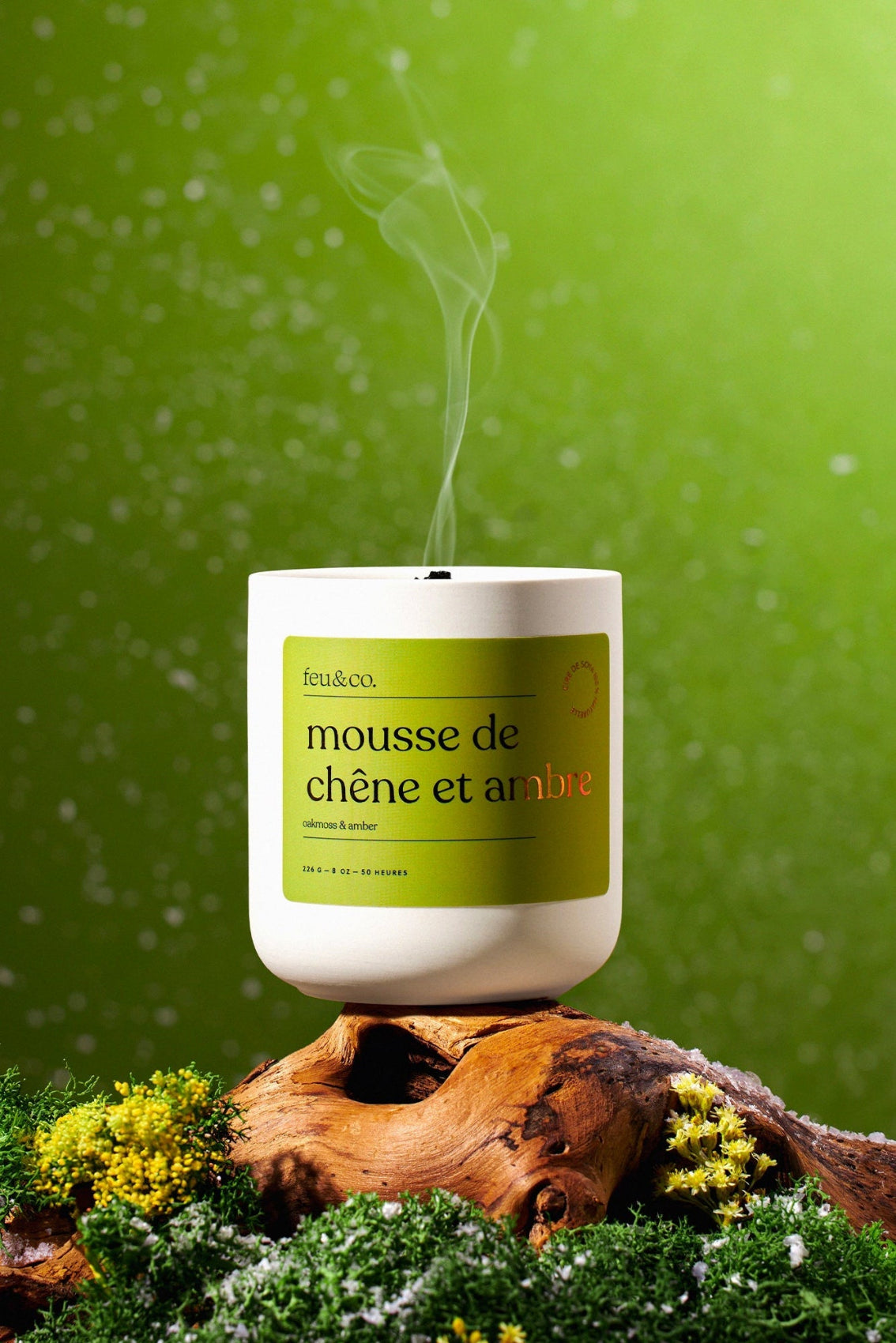8 oz (226 g) | 50 heures | Mèche de bois crépitante