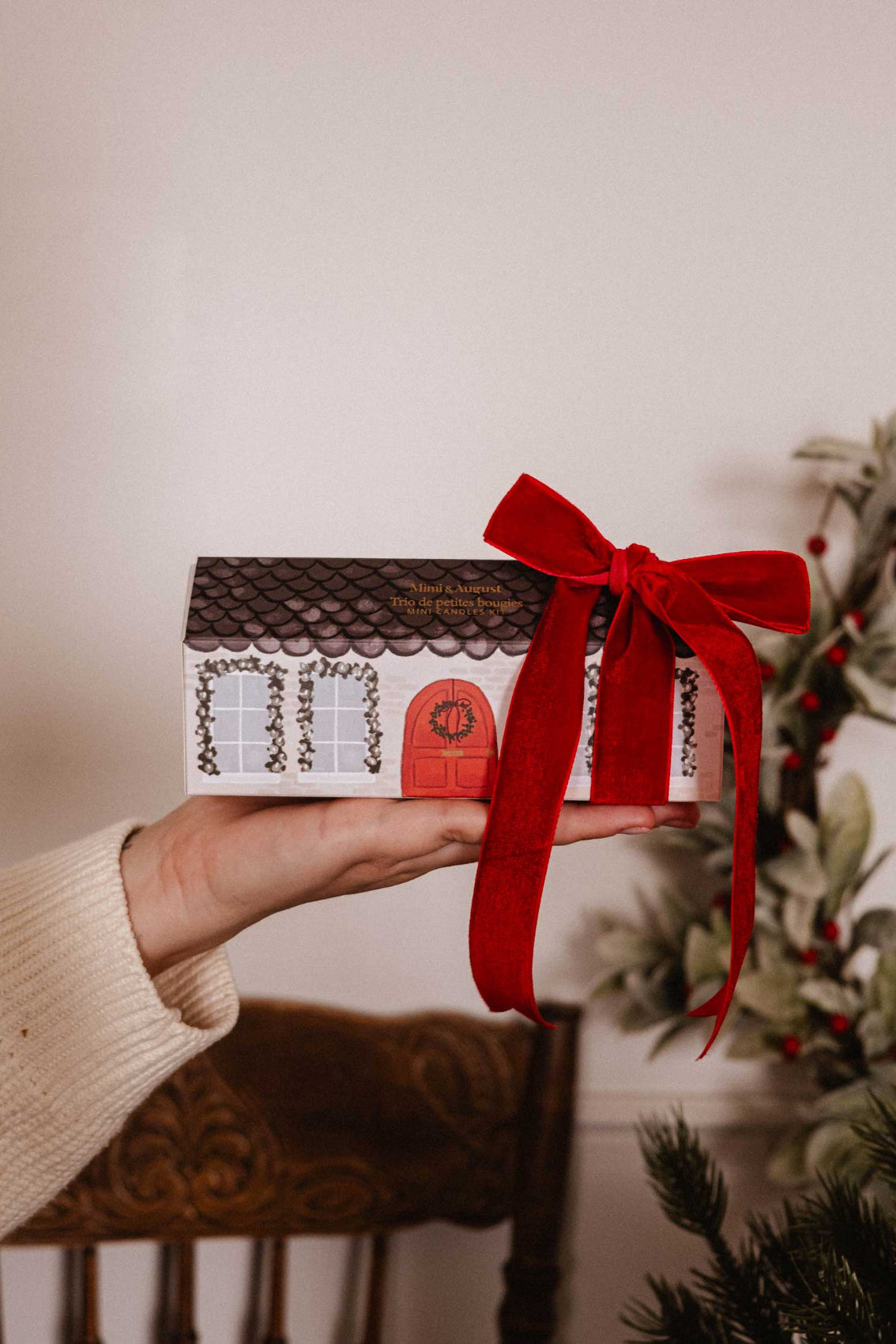 À l’intérieur, découvre trois bougies de 2 oz coulées à la main, prêtes à embaumer ton cocon d’arômes réconfortants et lumineux. Comme une petite maison où il fait toujours bon se réfugier, elle t’invite à ralentir, à sourire et à savourer chaque instant du temps des Fêtes.