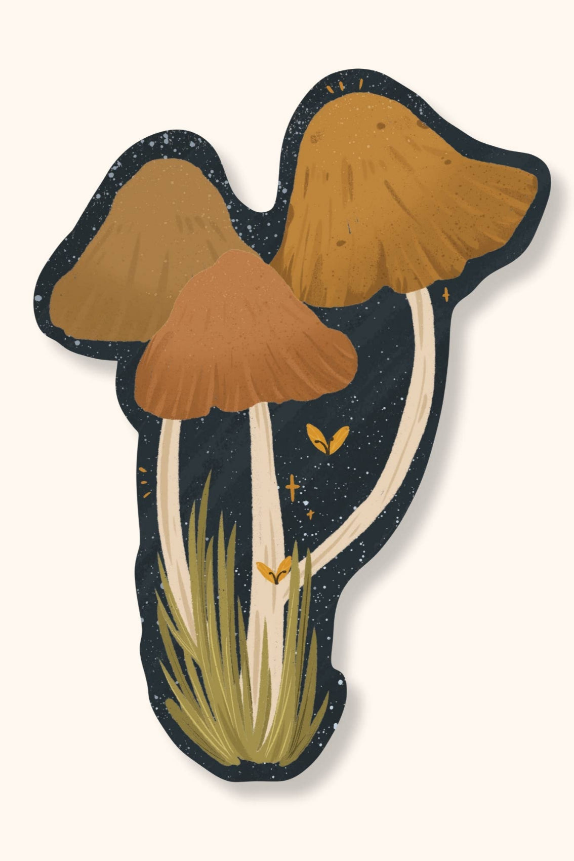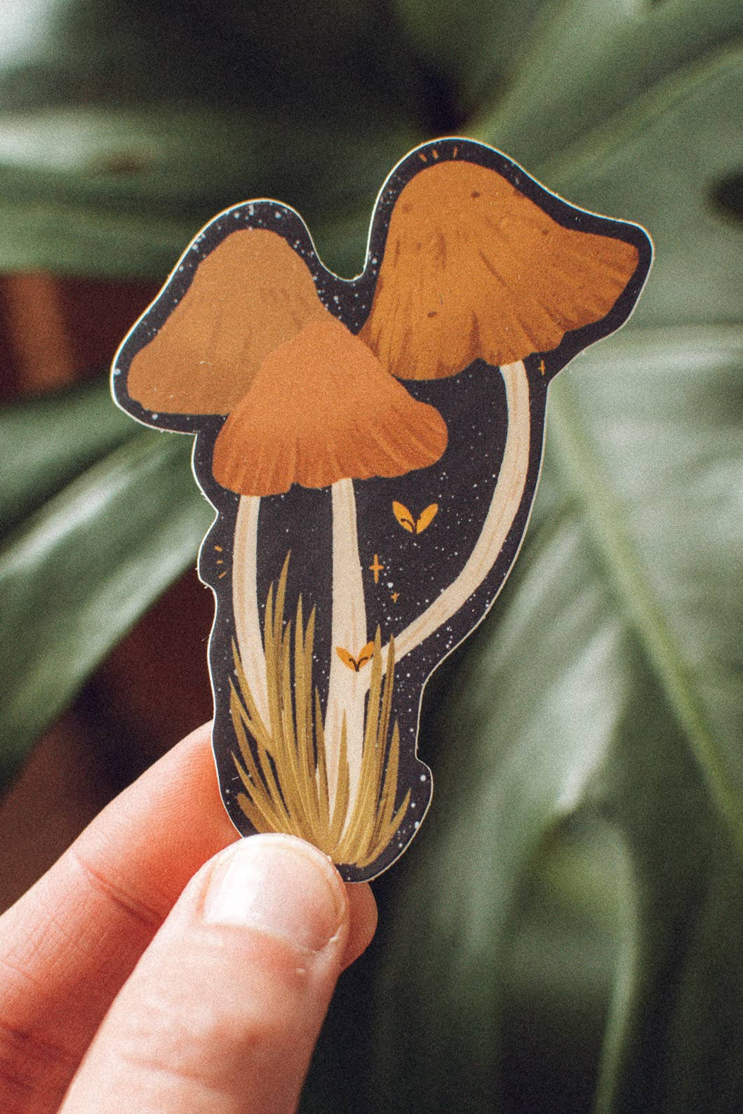 Un petit groupe de champignons bruns sous un ciel nocturne, entouré de lucioles — c'est le genre de magie silencieuse que vos clients aiment emporter avec eux. Illustré à la main par nous dans le nord de l'Ontario et imprimé au Canada sur du vinyle de qualité supérieure, cet autocollant est étanche, résistant aux rayures et passe au lave-vaisselle, parfait pour les cahiers, ordinateurs portables ou bouteilles d'eau. Un choix charmant pour les magasins de cadeaux modernes et les boutiques qui s'inspirent de la nature et des présentations douillettes et inspirées des cottages. Se marie parfaitement avec nos nouveaux designs d'automne et d'Halloween pour un assortiment complet d'automne auquel les amateurs d'oiseaux et les acheteurs de cadeaux ne peuvent résister.