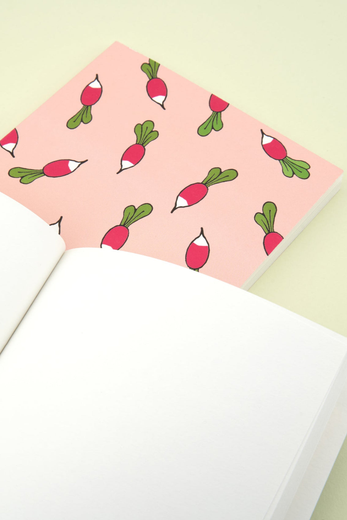 Pour ne plus laisser passer nos idées de génie, hop, on les note dans ce carnet radis qu’on garde toujours à portée de main ! Il s’adapte aussi parfaitement au dessin grâce à ses 64 pages blanches et sa belle qualité de papier.