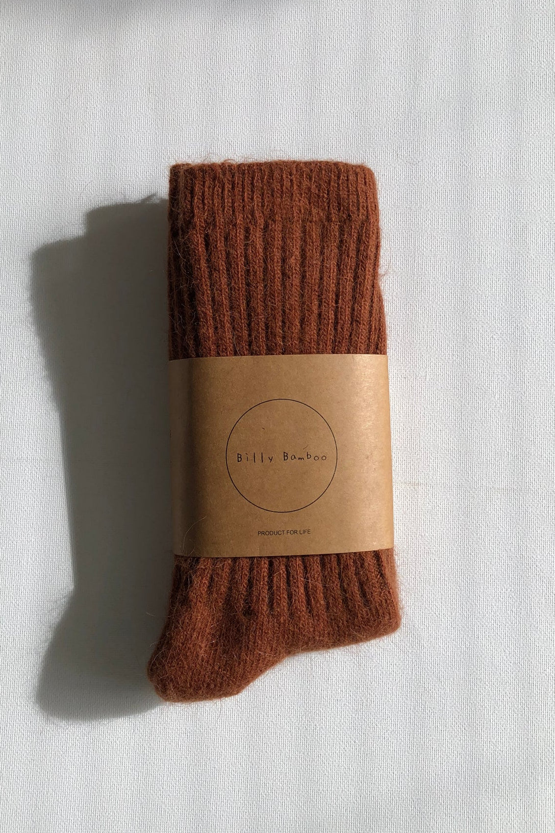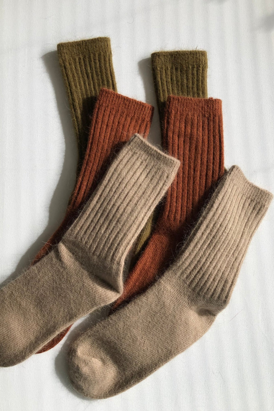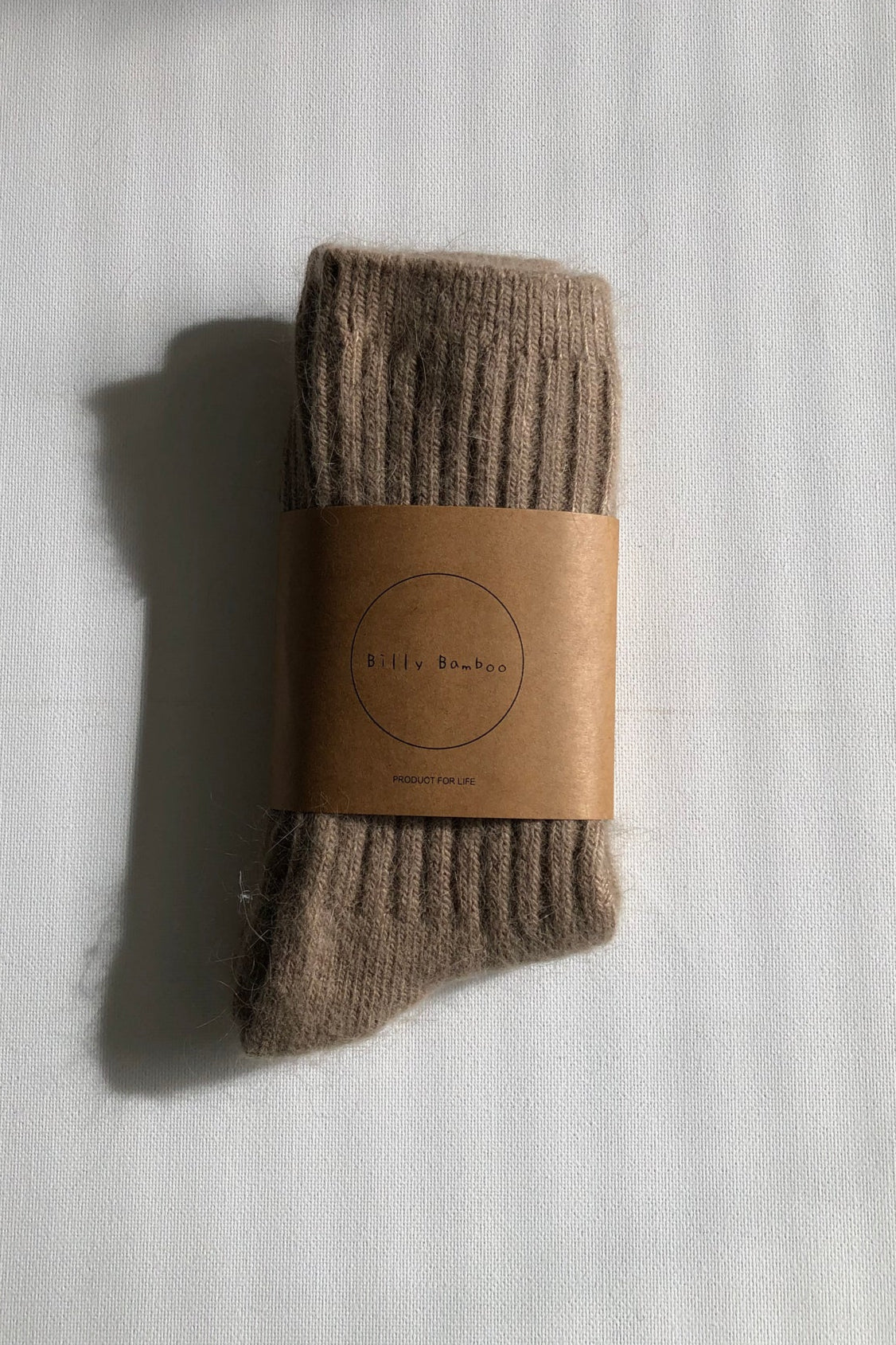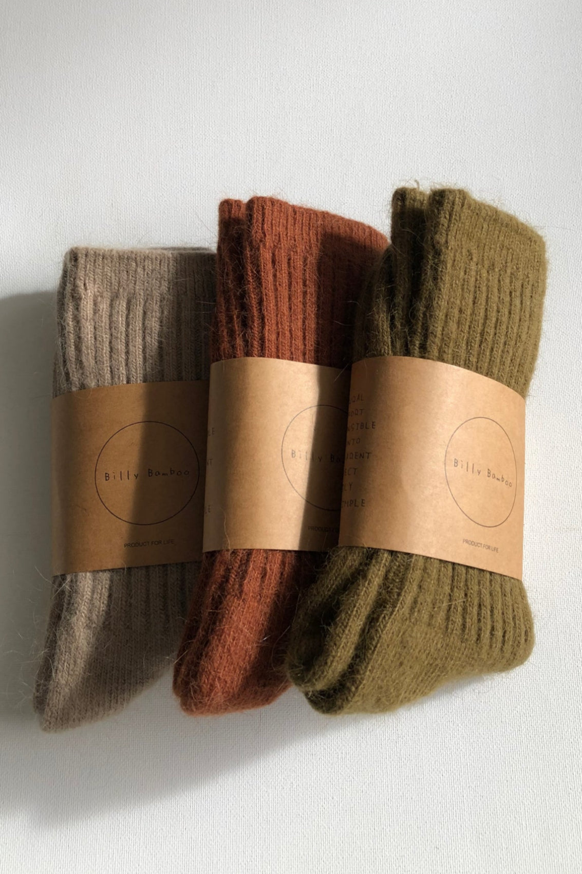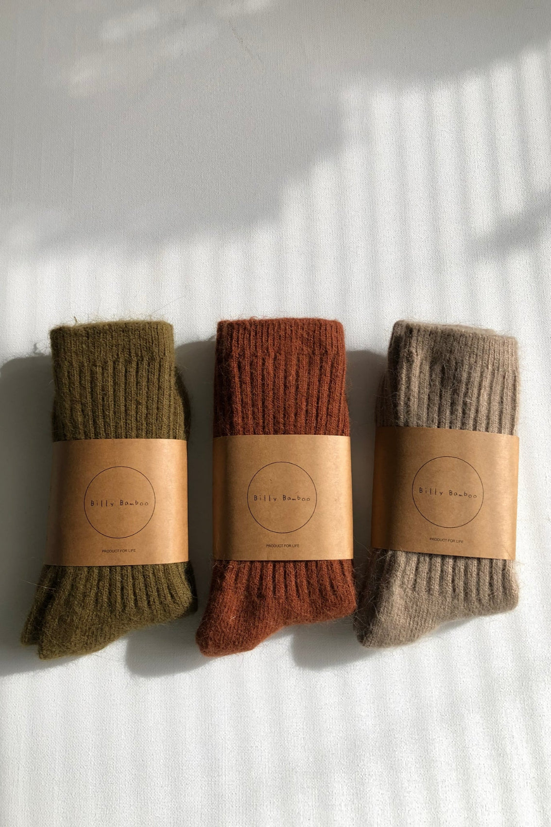 Ces chaussettes en laine douillettes utilisent un fil mélangé à haute teneur en angora, créant une pièce stable avec une sensation naturelle de laine, idéale pour le temps froid.