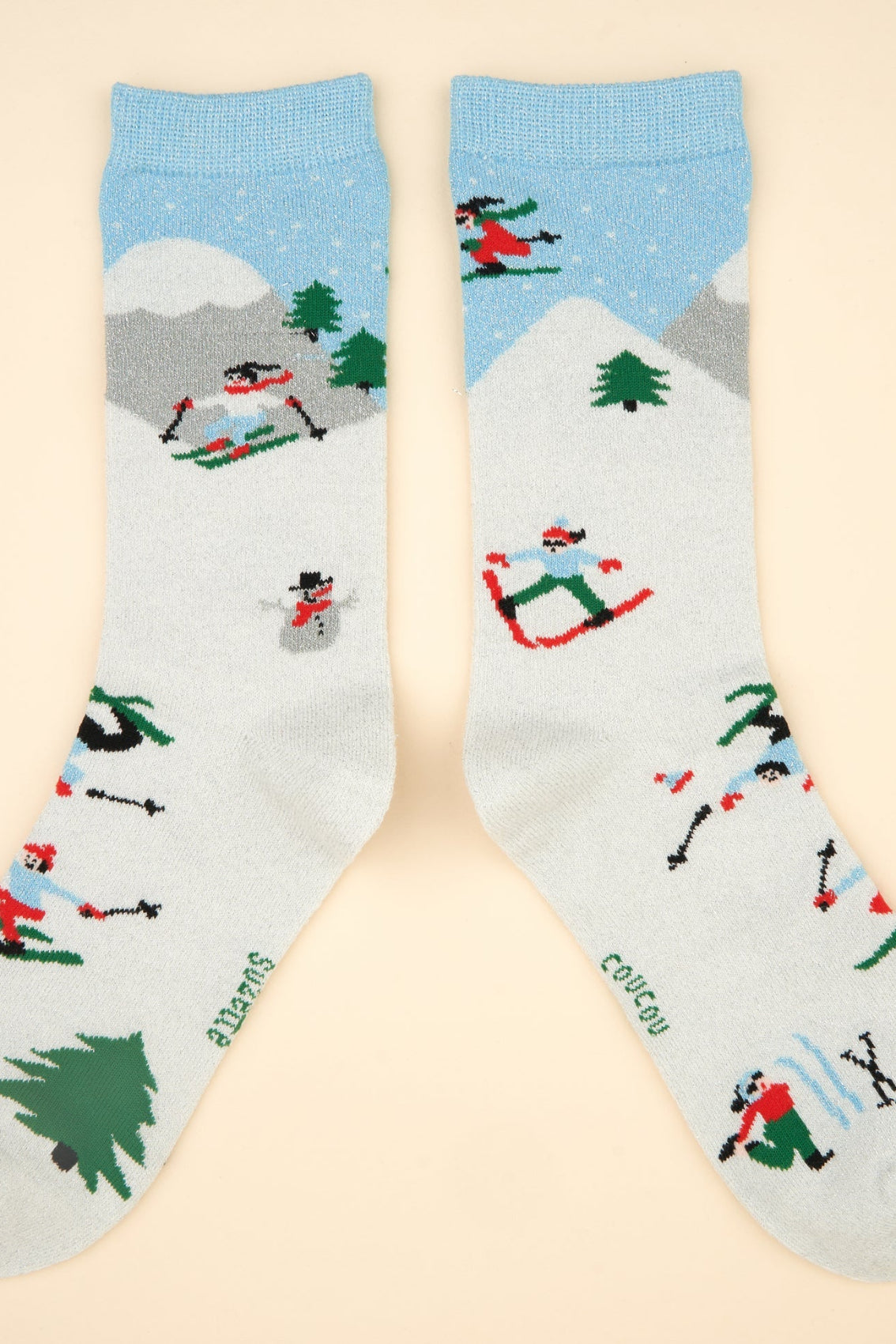 Cette paire de chaussettes vous est familière ? C’est que vous êtes un.e fan de la première heure ! Eh oui, ces petites chéries ont été créées en 2019, et ressortent avec joie des archives 6 ans plus tard. On adore cette petite scène de vie à la montagne avec des skieurs de tous niveaux, le tout à paillettes bien sûr !