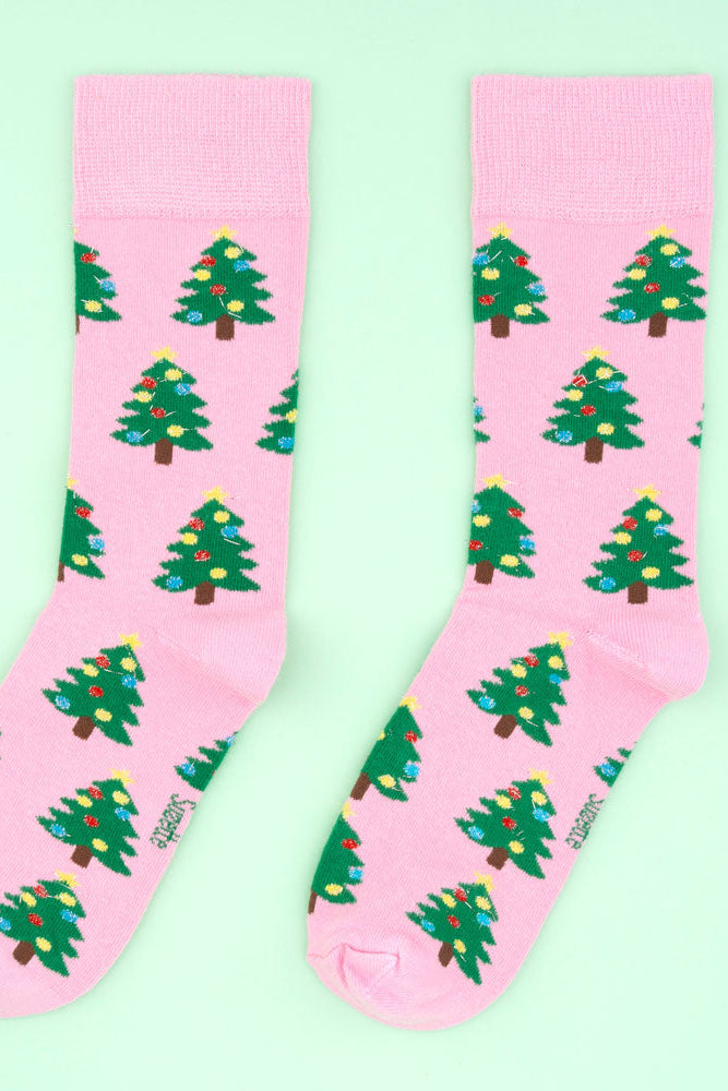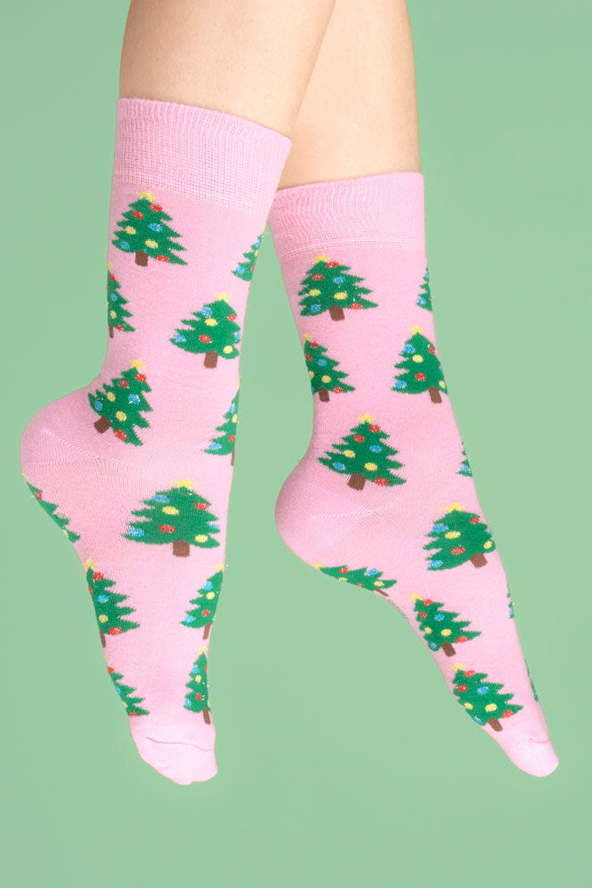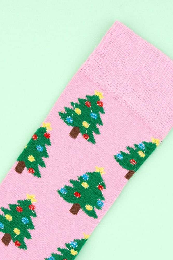 Le must-have de l’hiver : ces magnifiques chaussettes roses en coton à motif sapins magnifiquement décorés. Impossible de concevoir cet accessoire sans une bonne dose de paillettes, n’est-ce pas. On adore leurs boules multicolores qui scintillent à nos pieds et qui nous font patienter difficilement mais sûrement jusqu’aux fêtes