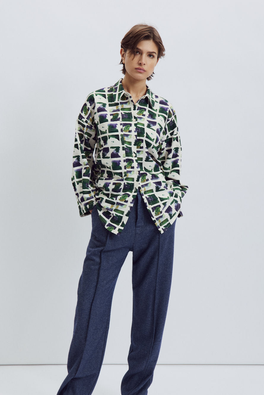 Chemise longue, légèrement oversize, dotée d'une grande poche plaquée sur le devant, cette pièce est l'un de nos best-sellers. Ultra confortable, elle est parfaite en toute occasion, décontractée ou plus habillée. Nos imprimés, créés en interne, rendent chaque chemise unique et apportent une touche d'originalité à votre garde-robe.