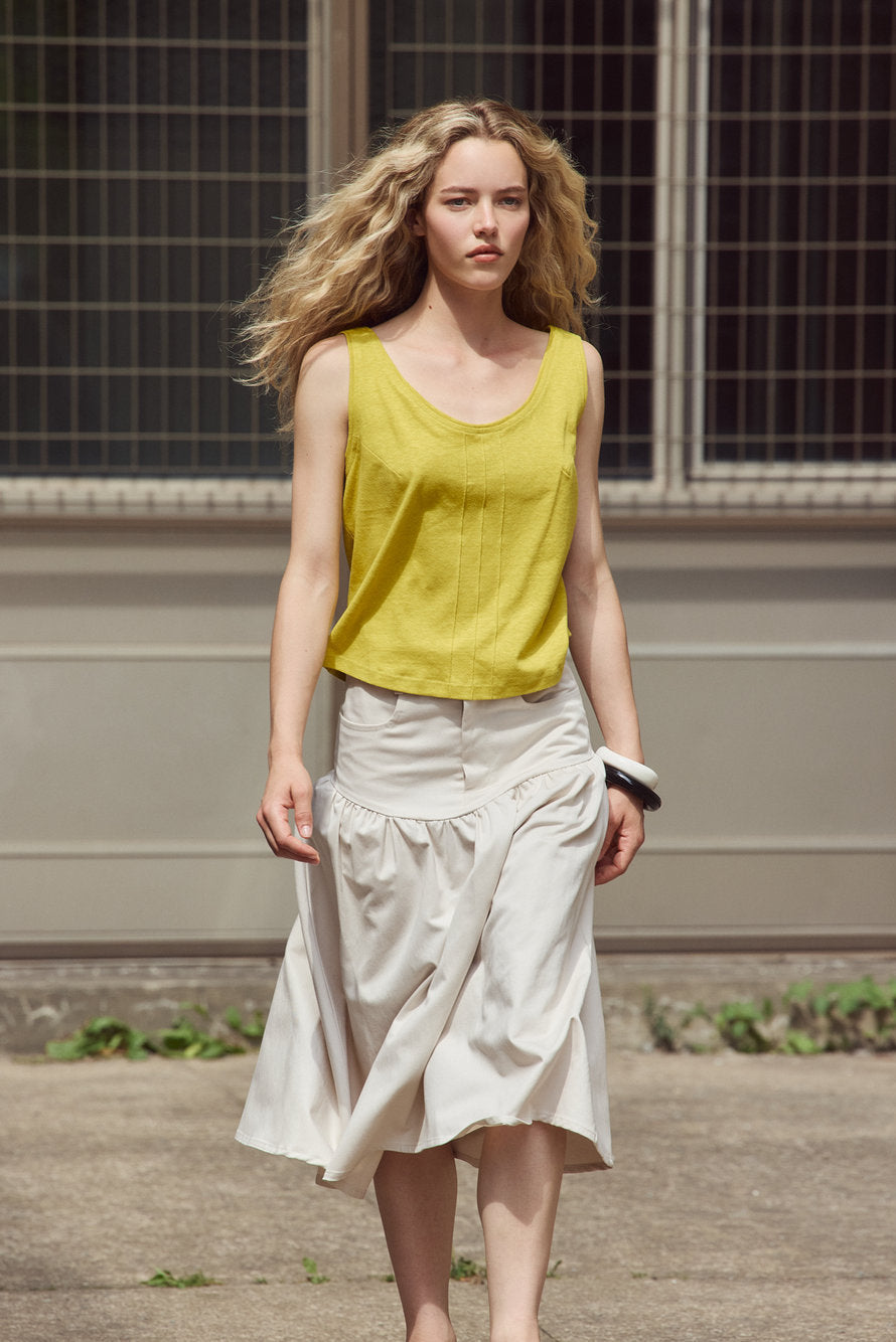 La jupe Kerry est une pièce incontournable pour un style féminin et soigné. Sa coupe mi-longue flatteuse est sublimée par des plis délicats qui créent du volume et de la dimension. Confectionnée dans un tissu léger mais structuré, elle garantit confort et maintien toute la journée. La fermeture éclair avant agrémentée d'un bouton assorti ajoute une touche d'élégance, tandis que les deux poches latérales offrent praticité sans compromettre le design raffiné.
