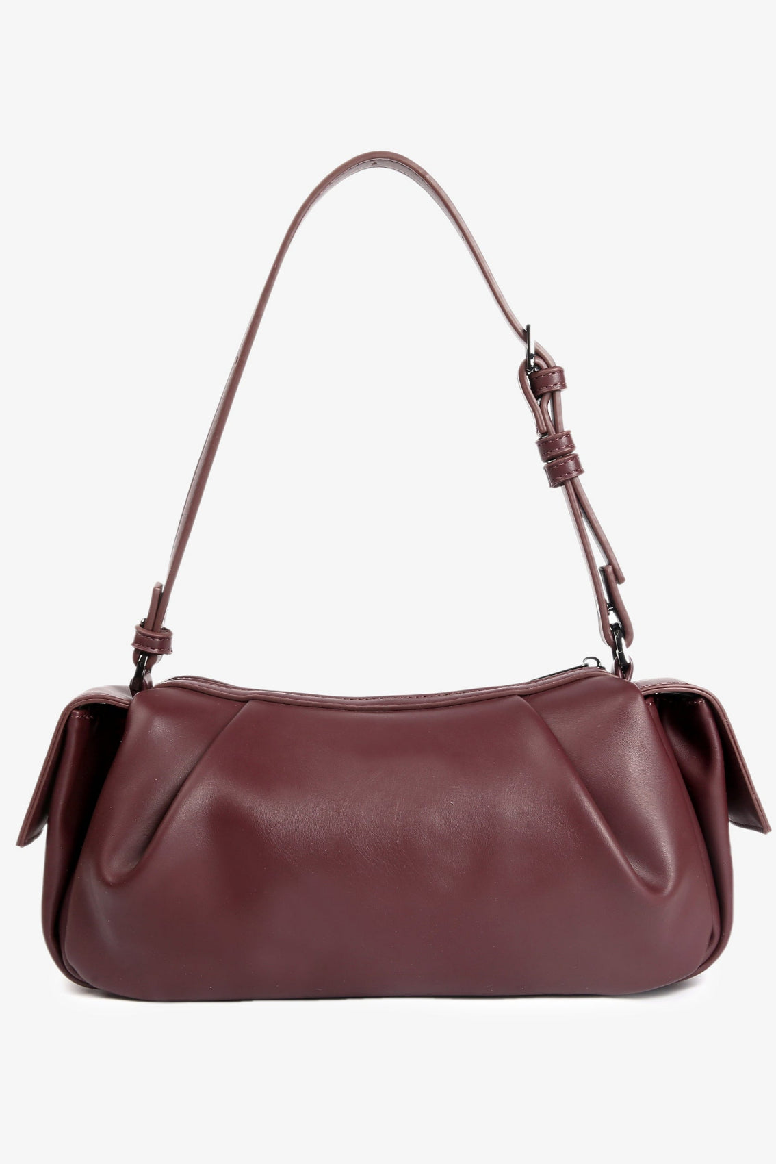 Sac bandoulière à un compartiment et fermeture zippée. Porté en bandoulière grâce à sa bandoulière amovible et réglable, il est doté d'une poche intérieure zippée et de deux poches extérieures à rabats pressionnés.