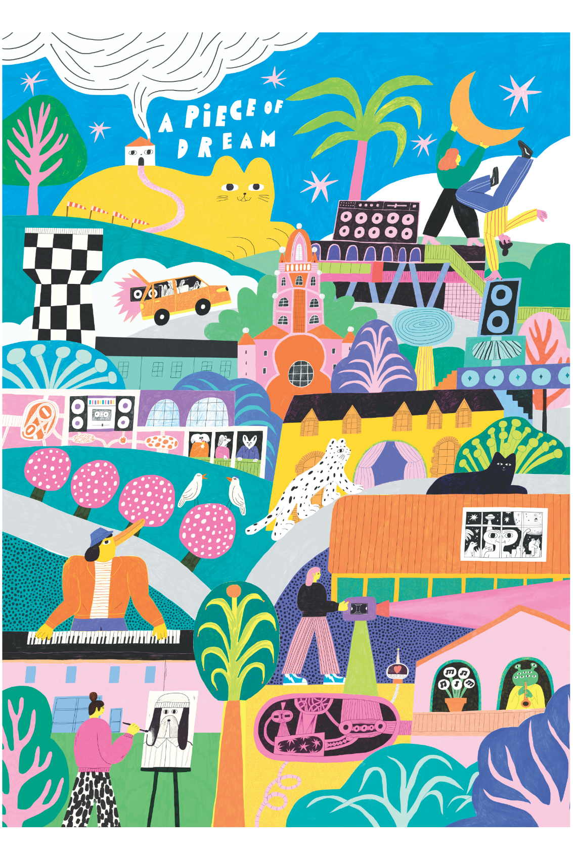 Guillaume Denaud est un illustrateur basé près de Nantes. Son univers coloré, naïf et onirique, inspiré par la musique et la culture pop, apporte une touche d'optimisme aux sujets qu'il explore.