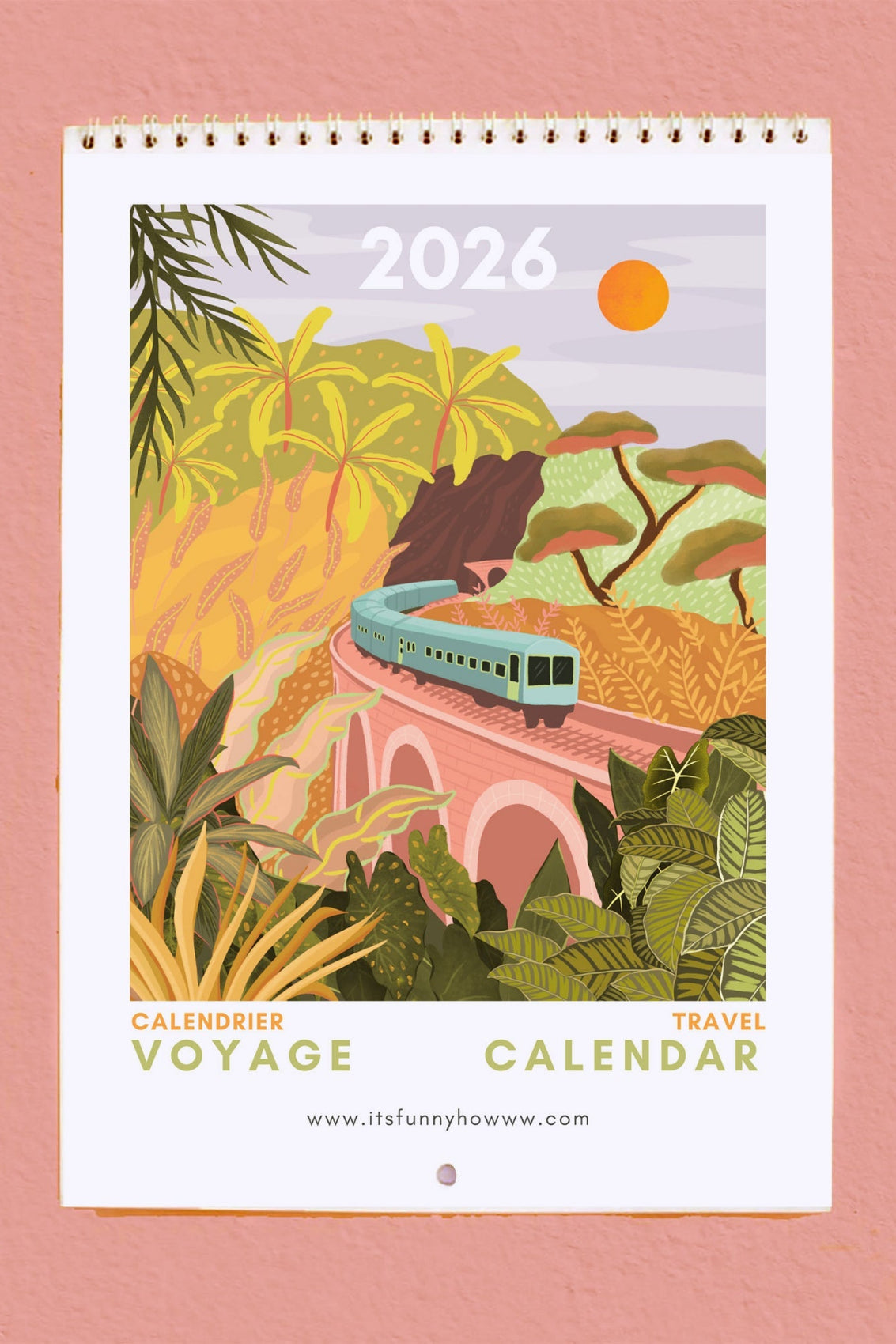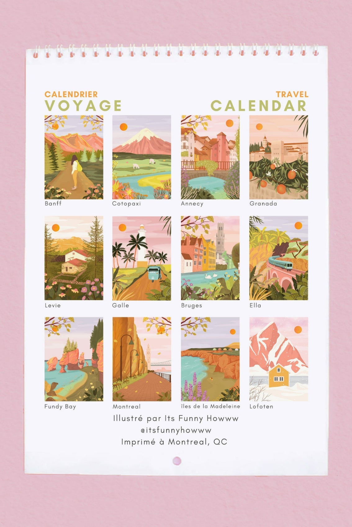 Embarquez pour une aventure d'un an avec notre superbe calendrier 2026, agrémenté de 12 illustrations époustouflantes de destinations de voyage emblématiques du monde entier. Chaque mois vous transportera vers un lieu inédit et captivant, des rues emblématiques de Bruges aux paysages sereins du Canada.