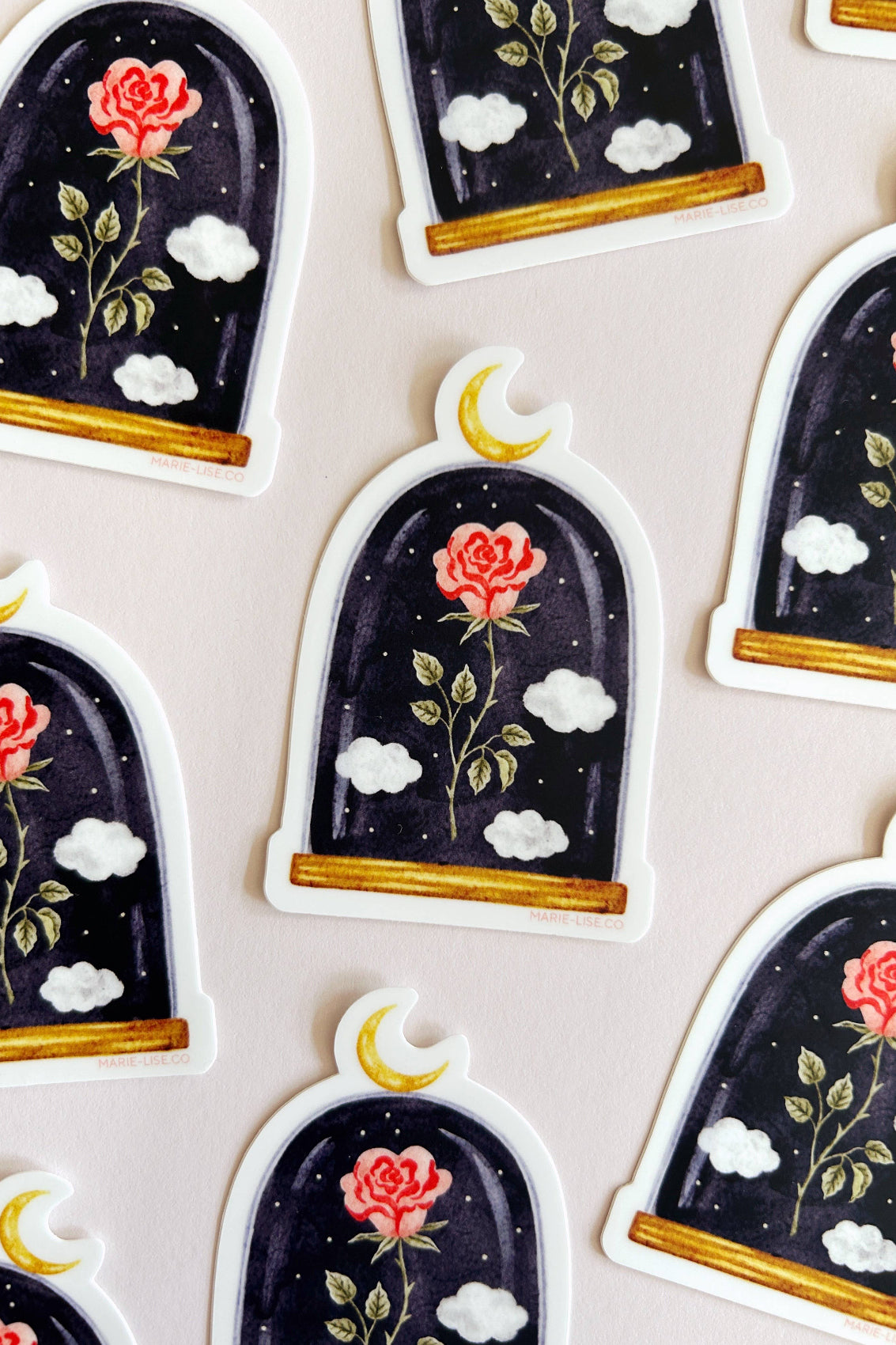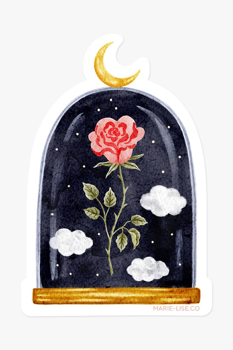Autocollant découpé. Illustration d'un dôme magique contenant une rose dans un ciel de nuit. Parfait pour décorer et personnaliser vos objets préférés.