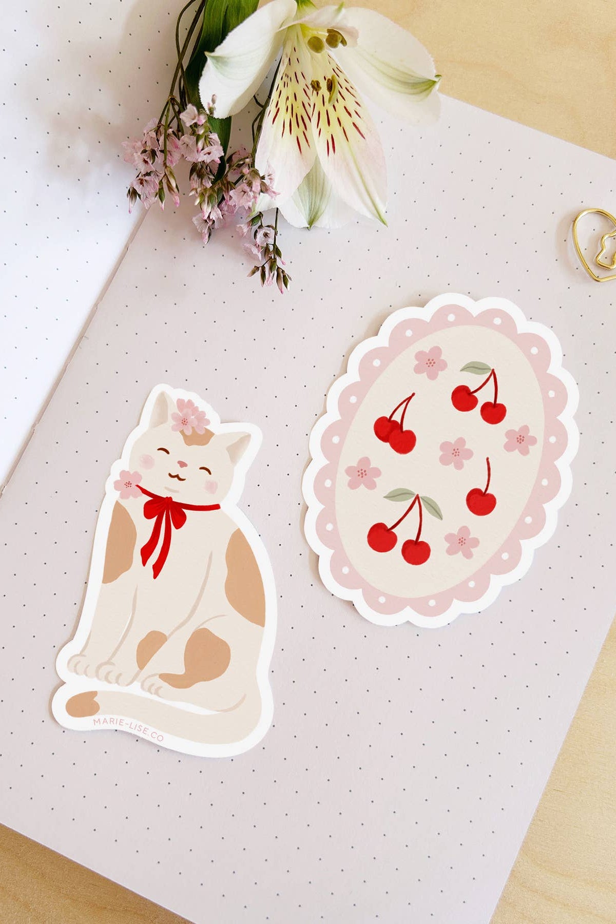 Sticker découpé. Illustration de cerises vintage. Parfait pour décorer et personnaliser vos objets préférés.
