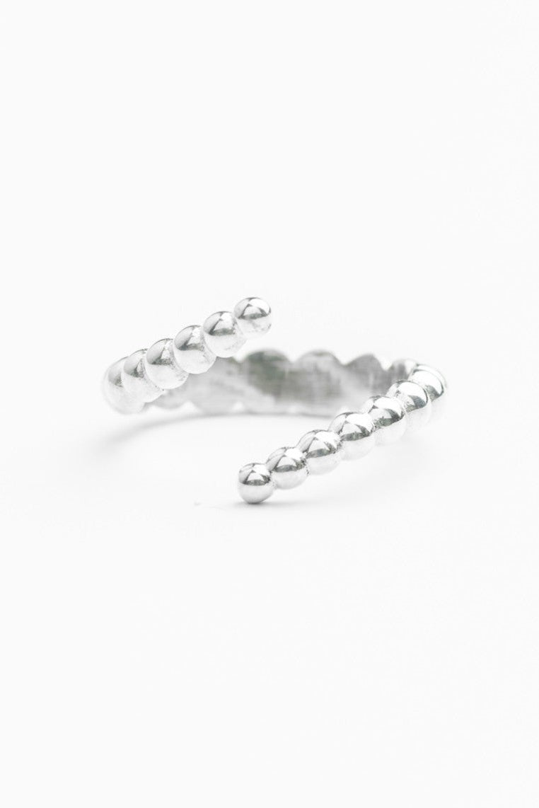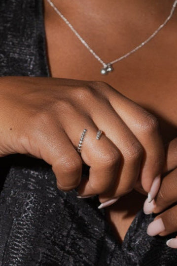 La bague Rigel joue avec les courbes et les volumes grâce à son dégradé de granules en argent sterling. Ajustable, elle s’adapte parfaitement à différentes tailles et se porte seule ou en accumulation.