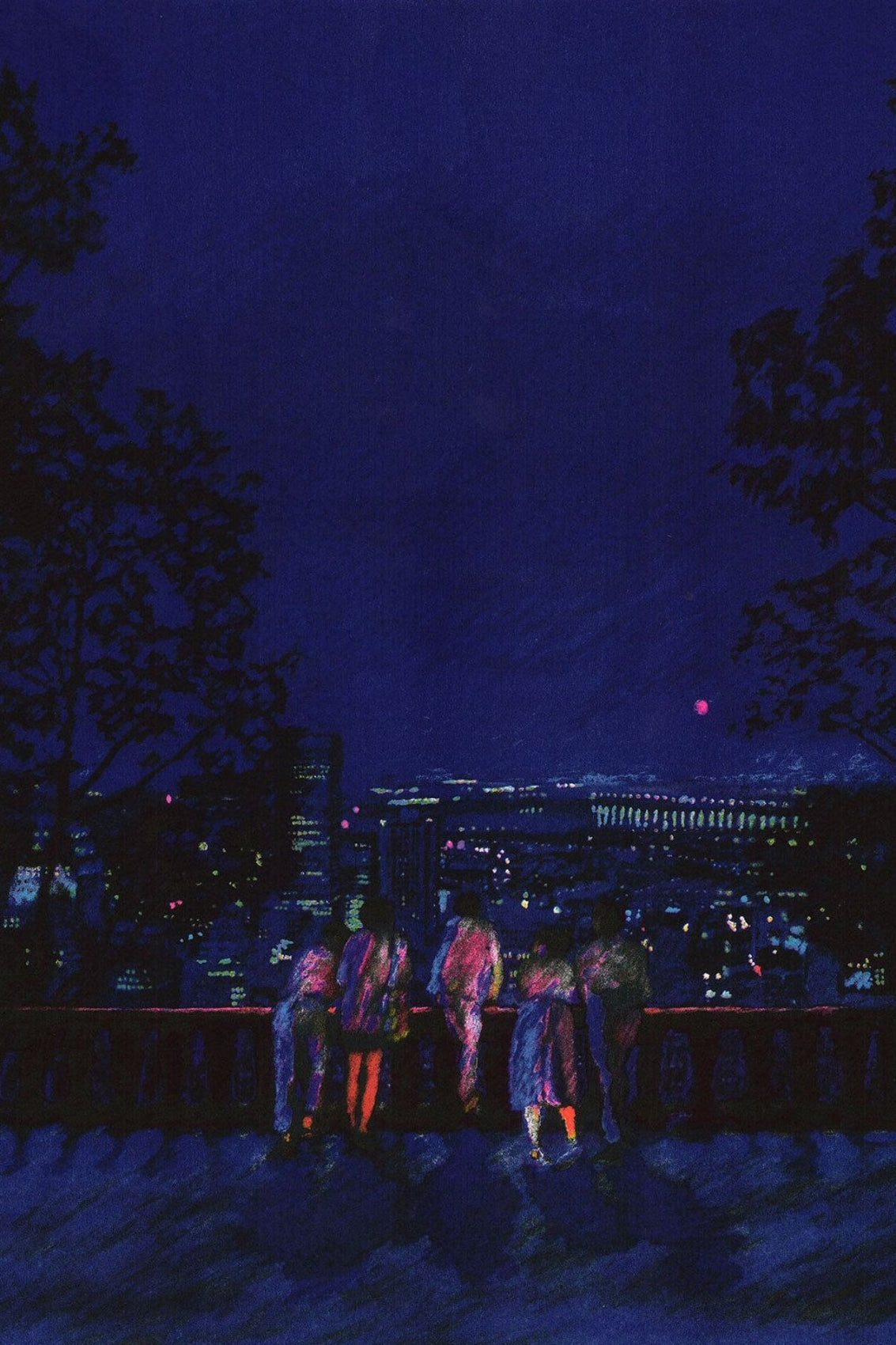 « Pour rendre hommage au film, je trouvais important de réaliser une vue qui mêle la skyline de Montréal et le point de vue du Mont Royal, le tout de nuit dans des couleurs électriques, très 80s.» Clément Thoby