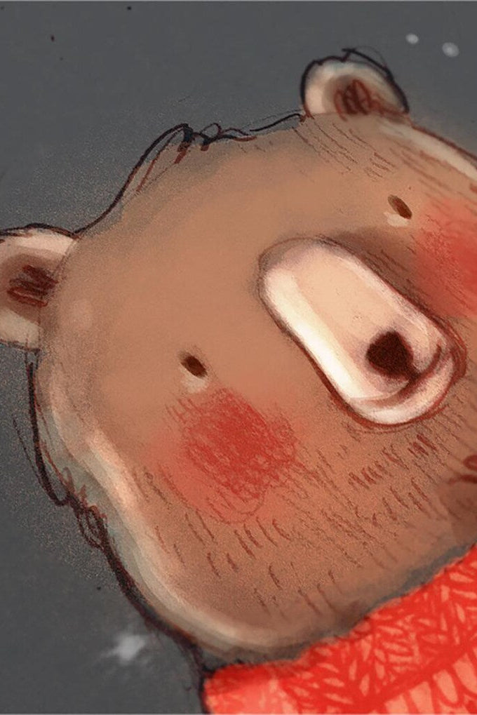 Carte de souhait, avec un ours tenant une boisson chaude!