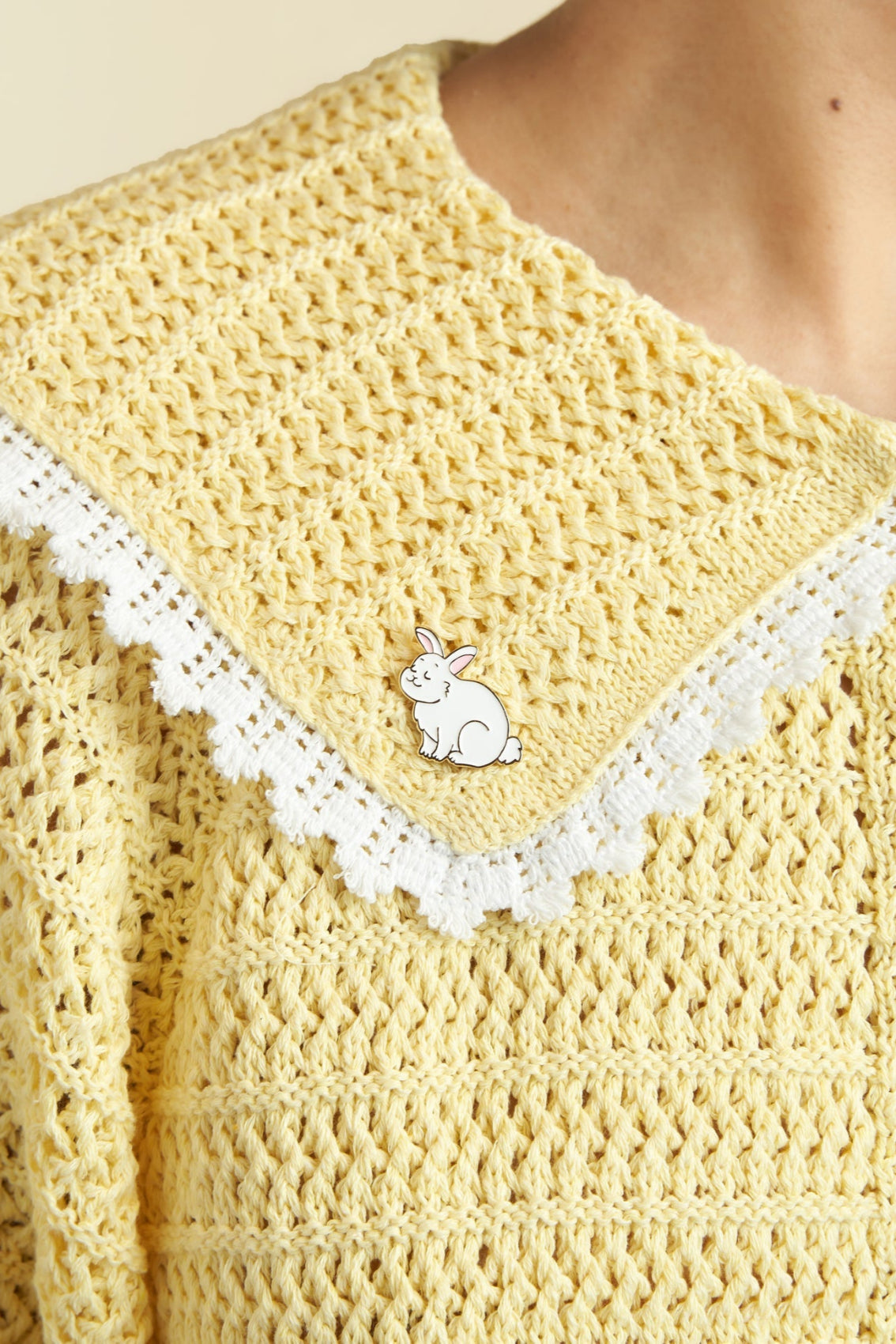 Les amoureux des lapins craqueront pour cette adorable petite boule de poils ! Ce pin's original en forme de lapin est prêt à s'accrocher à votre revers de veste et à apporter une touche ludique à votre tenue. On craque pour son petit air satisfait et sa queue en pompon tout doux qui complète le look.