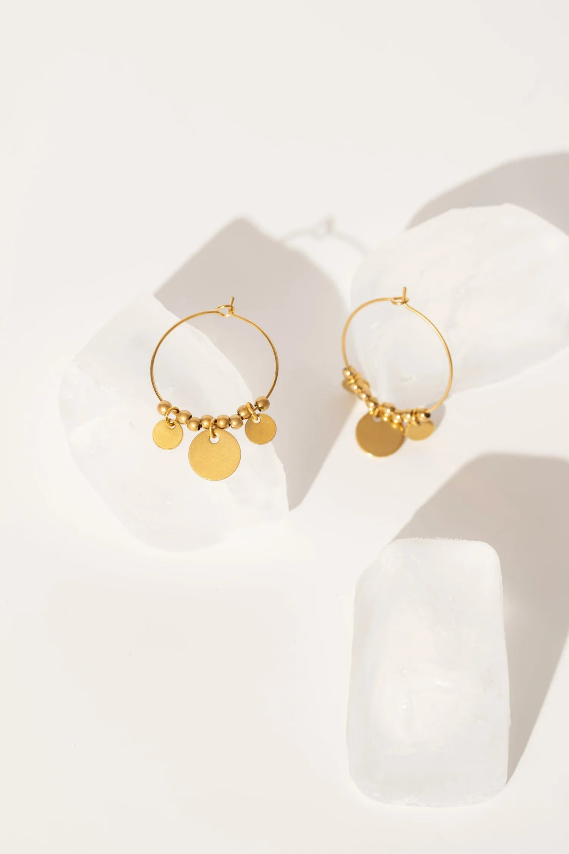 La version or est en acier inoxydable plaquée or. Pour conserver le placage intacte, il est fortement conseillé de garder votre bijou à l’abri de l’eau, des parfums ou des lotions. Si ces recommandations ne sont pas appliquées, il est possible qu’au fil du temps la couleur or s’estompe pour laisser place à la couleur naturelle de l’inox : argent. Cependant il ne ternira jamais et demeure hypoallergénique.