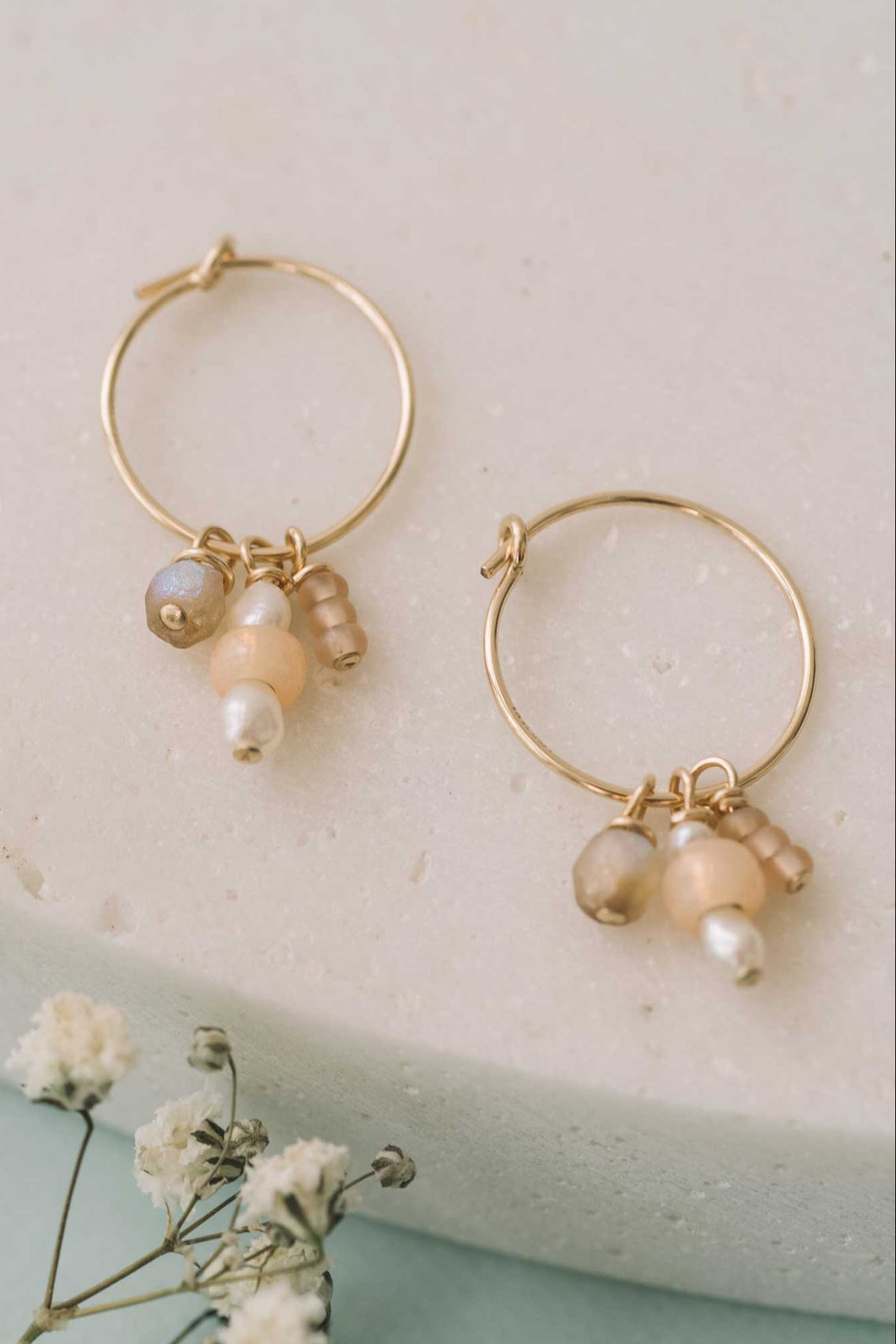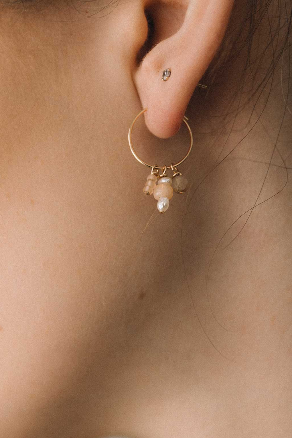 Petits anneaux en or rempli 14K avec perles de de verre antique mat, perles Miyuki et perles d'eau douce.