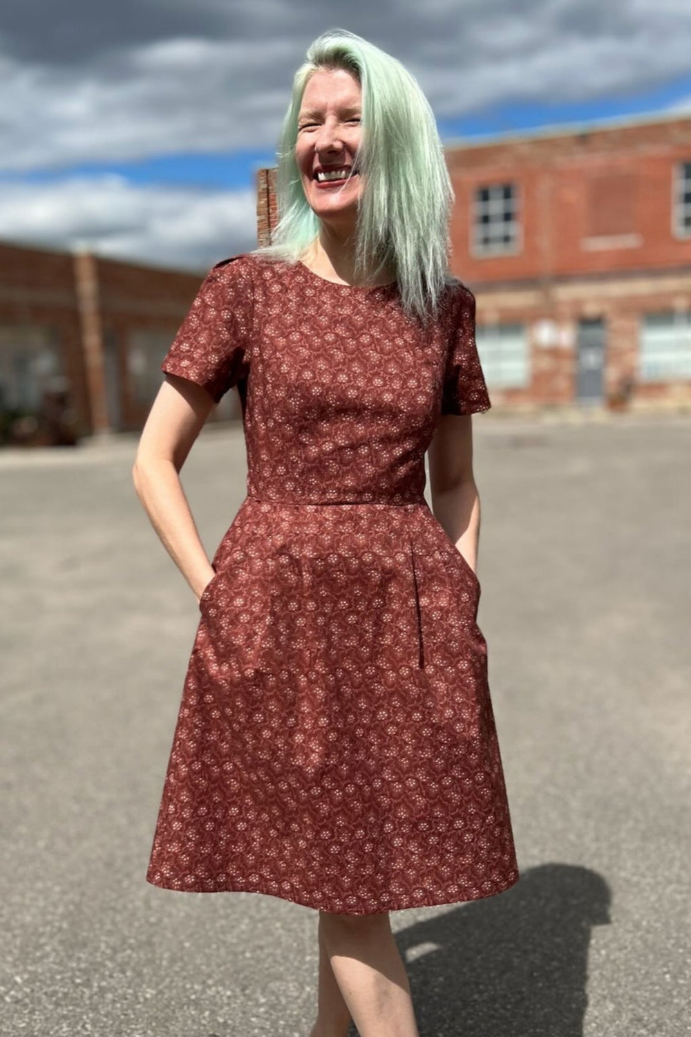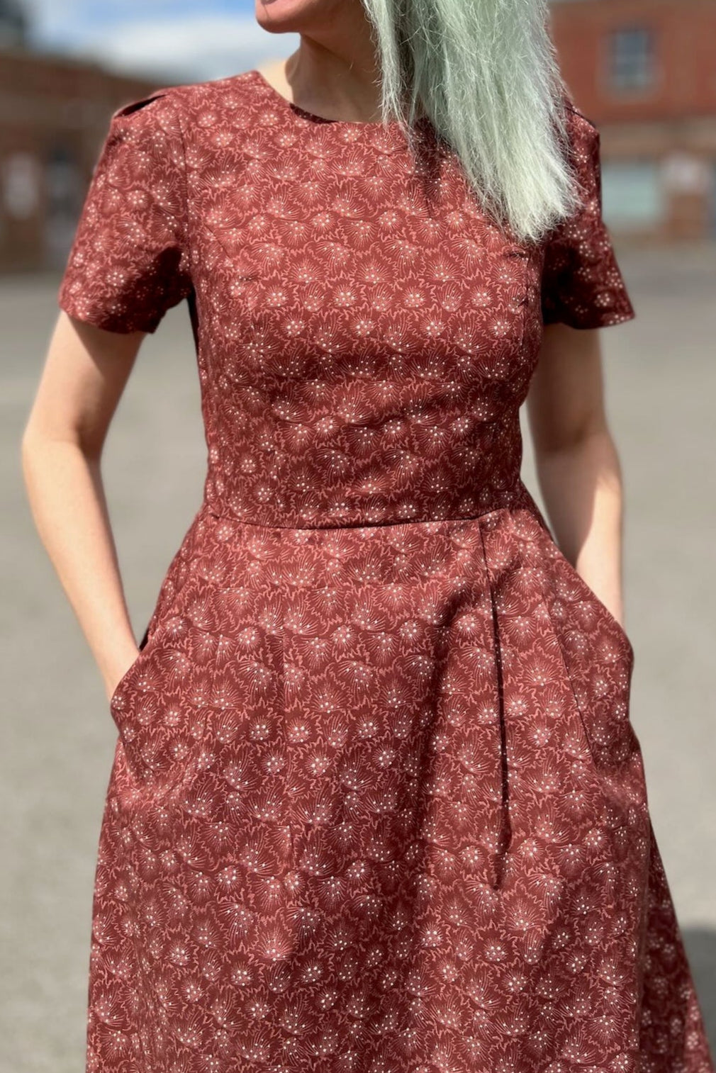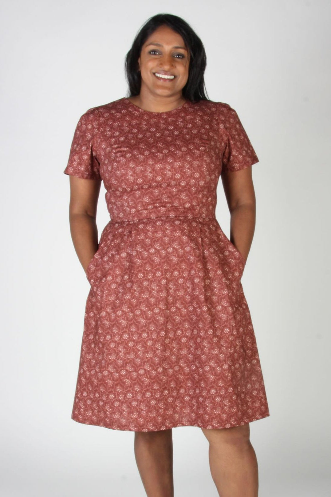 La robe Buttonquail arbore une coupe Birds classique, avec un haut à manches courtes facile à porter et une jupe plissée longueur genou avec poches. Elle se ferme par une fermeture éclair invisible au dos et est confectionnée en 100 % coton, avec une doublure en voile de coton 100 % certifié OEKO-Tex au niveau de la jupe.
