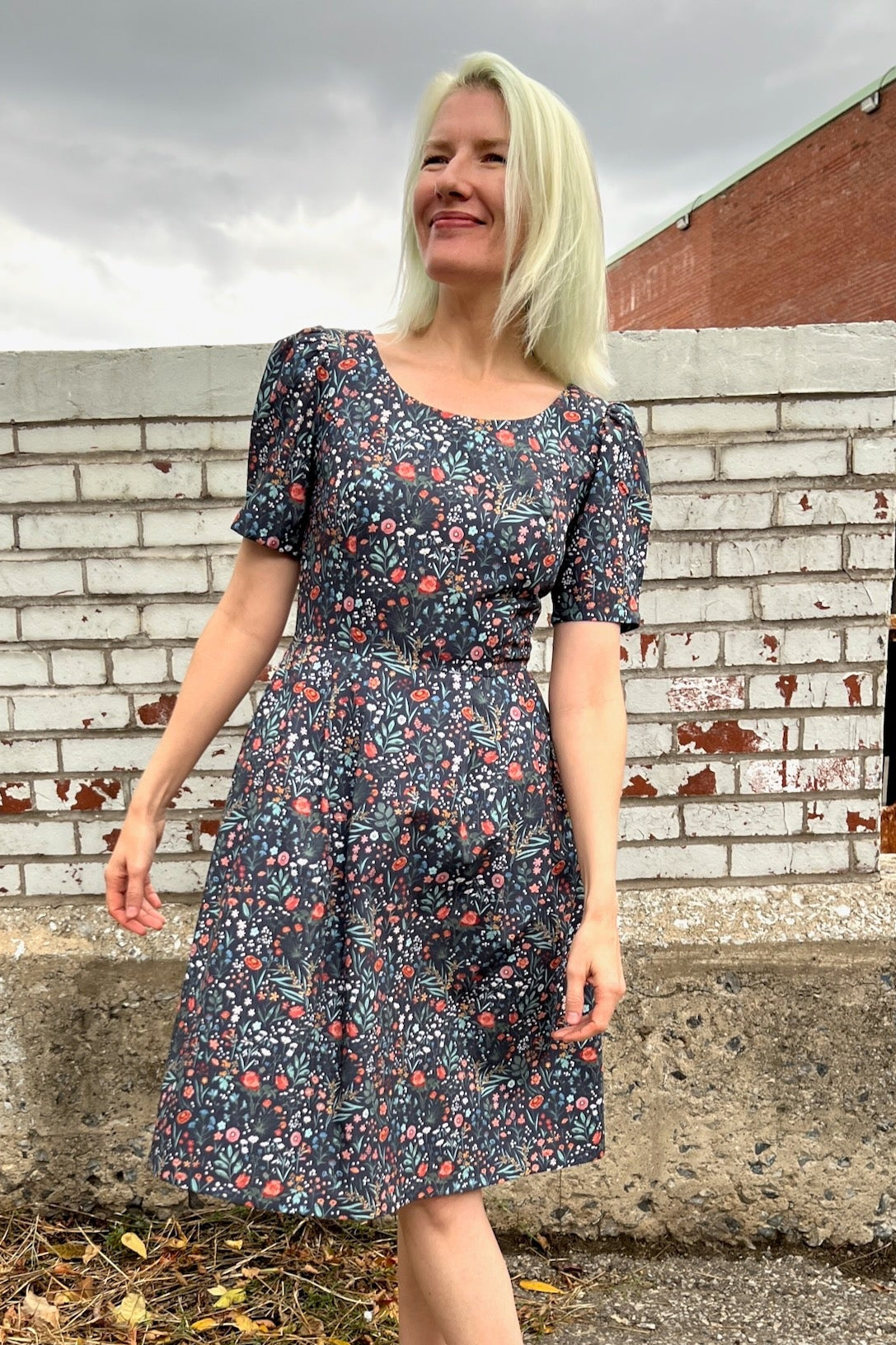 La robe Winter Chippy arbore une coupe classique Birds cintrée et évasée, avec des plis à la taille, des poches sur le devant, des manches froncées avec un ourlet plissé et une fermeture éclair invisible au dos.