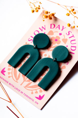 SLOW DAY STUDIOS Boucles d'oreilles Cœur et Œil maléfique - Paillettes Rouges
