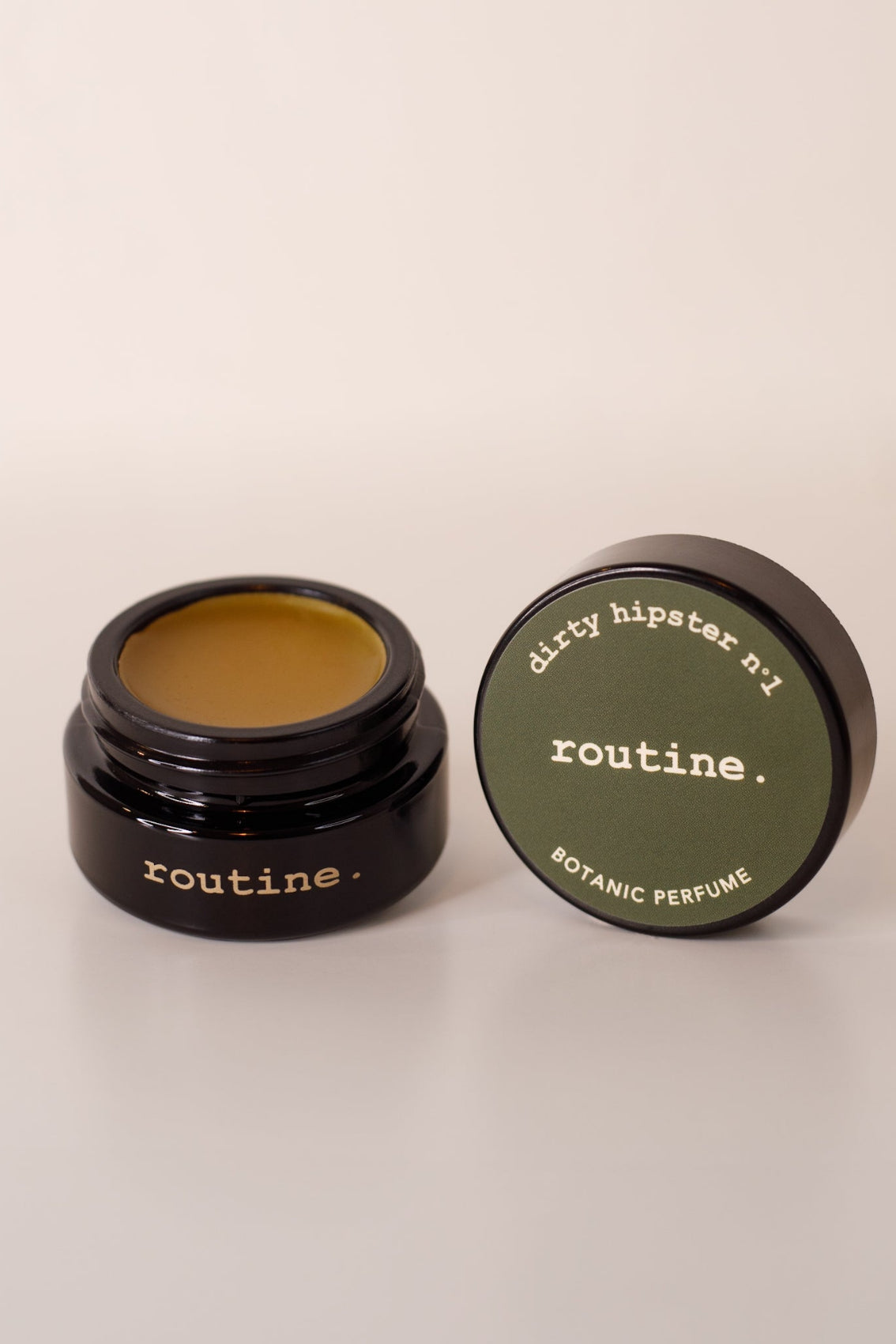 Ingrédients Dirty Hipster : Huile de pogostemon cablin (patchouli), cera alba (cire d'abeille), beurre de graines de theobroma cacao, huile de graines de ricinus communis (ricin), huile de noyau de prunus armeniaca (abricot).