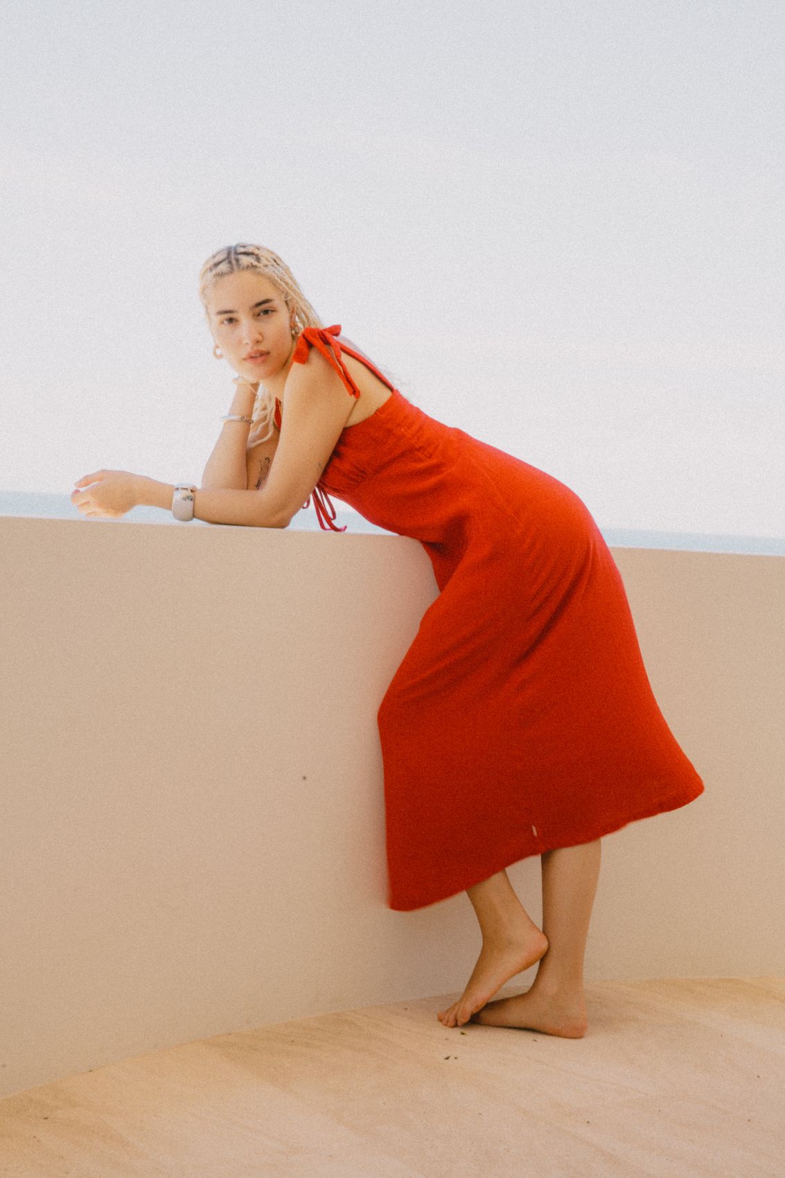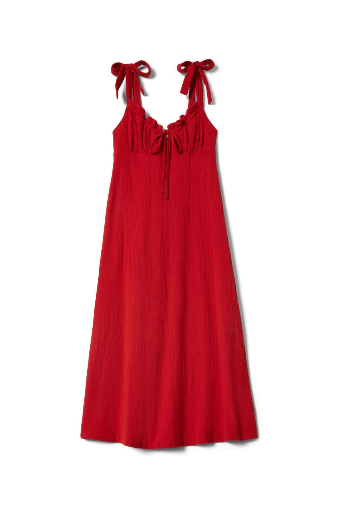 Robe à nouer en coton 100 % doux et durable, dotée de bretelles réglables et de smocks au dos pour une coupe flatteuse. Le nœud avant et la découpe goutte d'eau créent une silhouette classique et intemporelle. Parfaite pour les sorties décontractées, les brunchs ou les marchés, cette pièce polyvalente allie confort et style naturel.