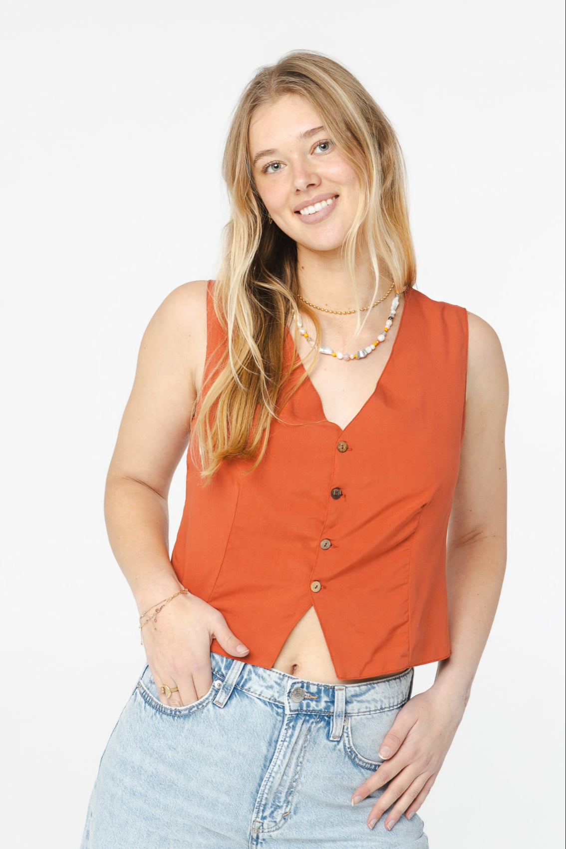Avec sa coupe masculine, la camisole Méli est parfaite pour être agencer facilement.