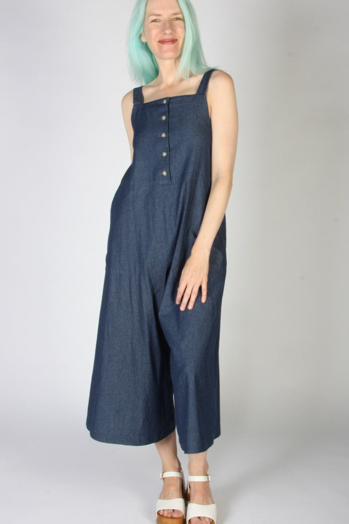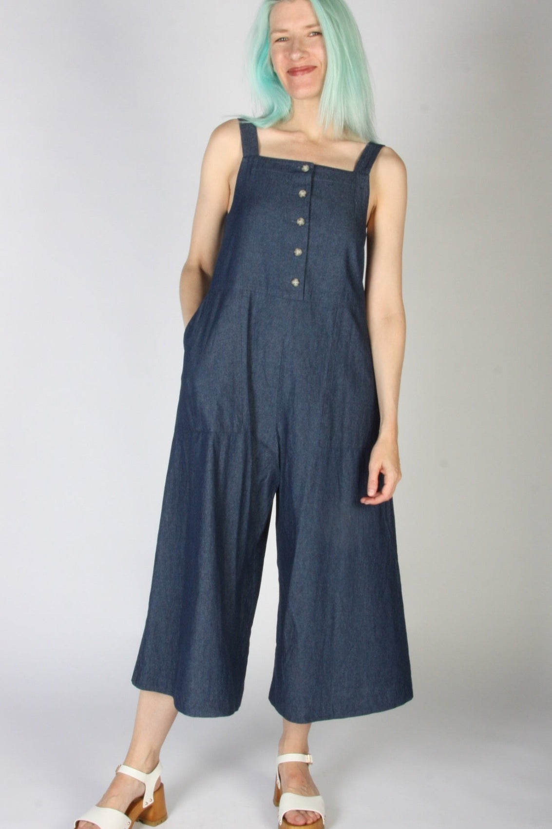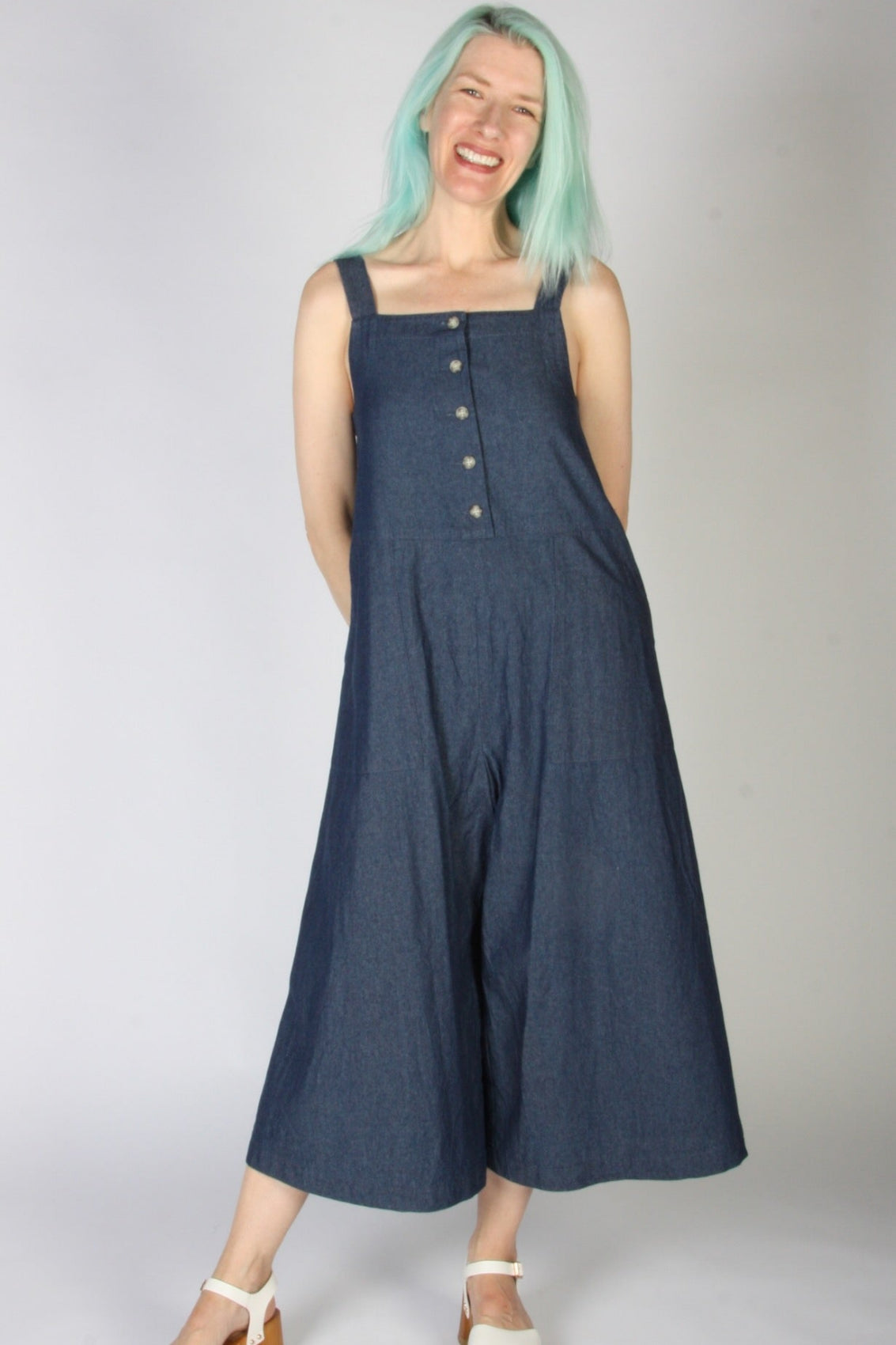 Firecrest est une combinaison pantalon facile à enfiler, dotée de poches et d'une fermeture boutonnée sur le devant. Confectionnée en denim de coton certifié OEKO-TEX® très doux et léger, elle est prélavée !