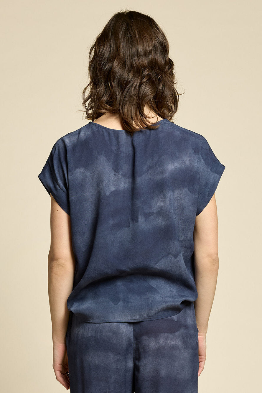 Haut à col rond, disponible dans leurs imprimé exclusif « Brume » facile à associer à vos jupes et pantalons préférés. Un incontournable intemporel !