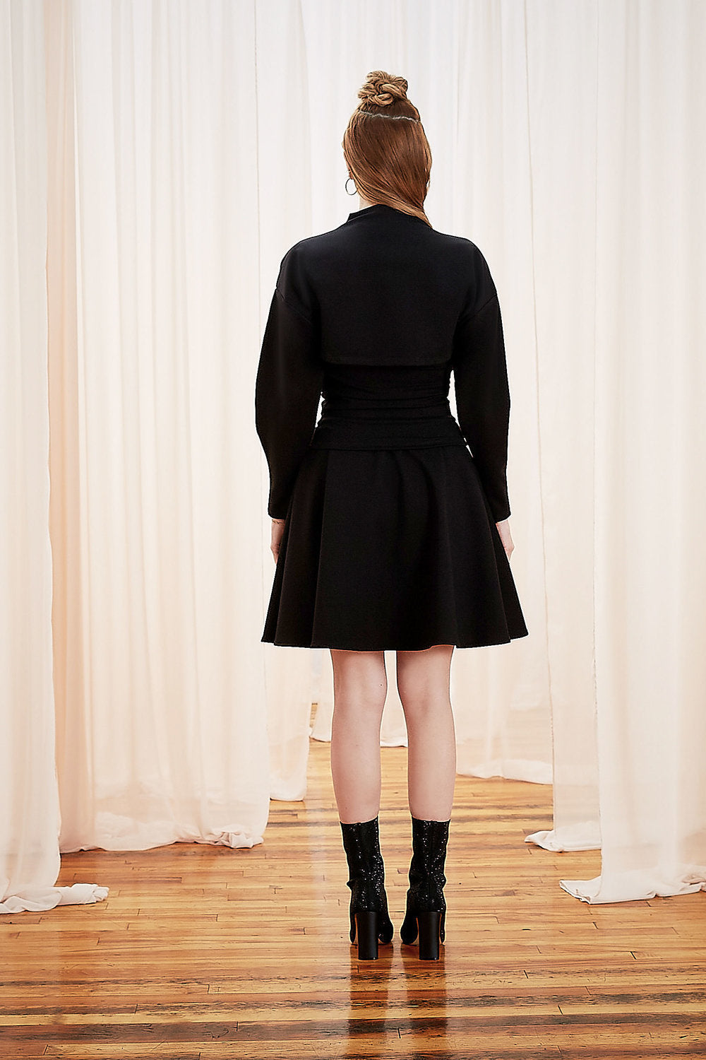 Jupe circulaire à taille haute avec poches latérales.