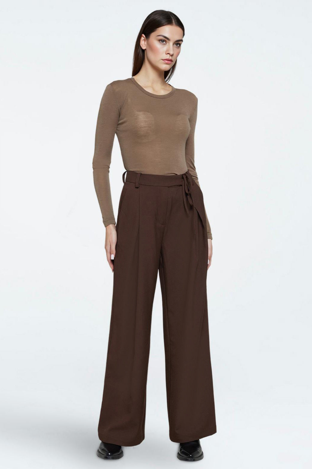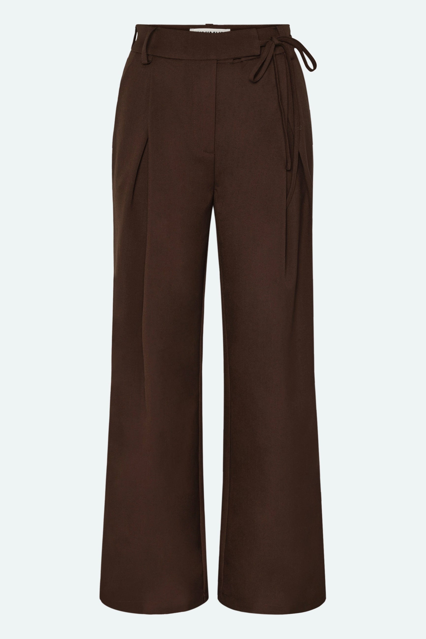 Gunli est un pantalon de costume large. Taille haute, coupe ample, il présente des plis ouverts sur le devant, des liens à nouer, deux poches et deux poches passepoilées à l'arrière.