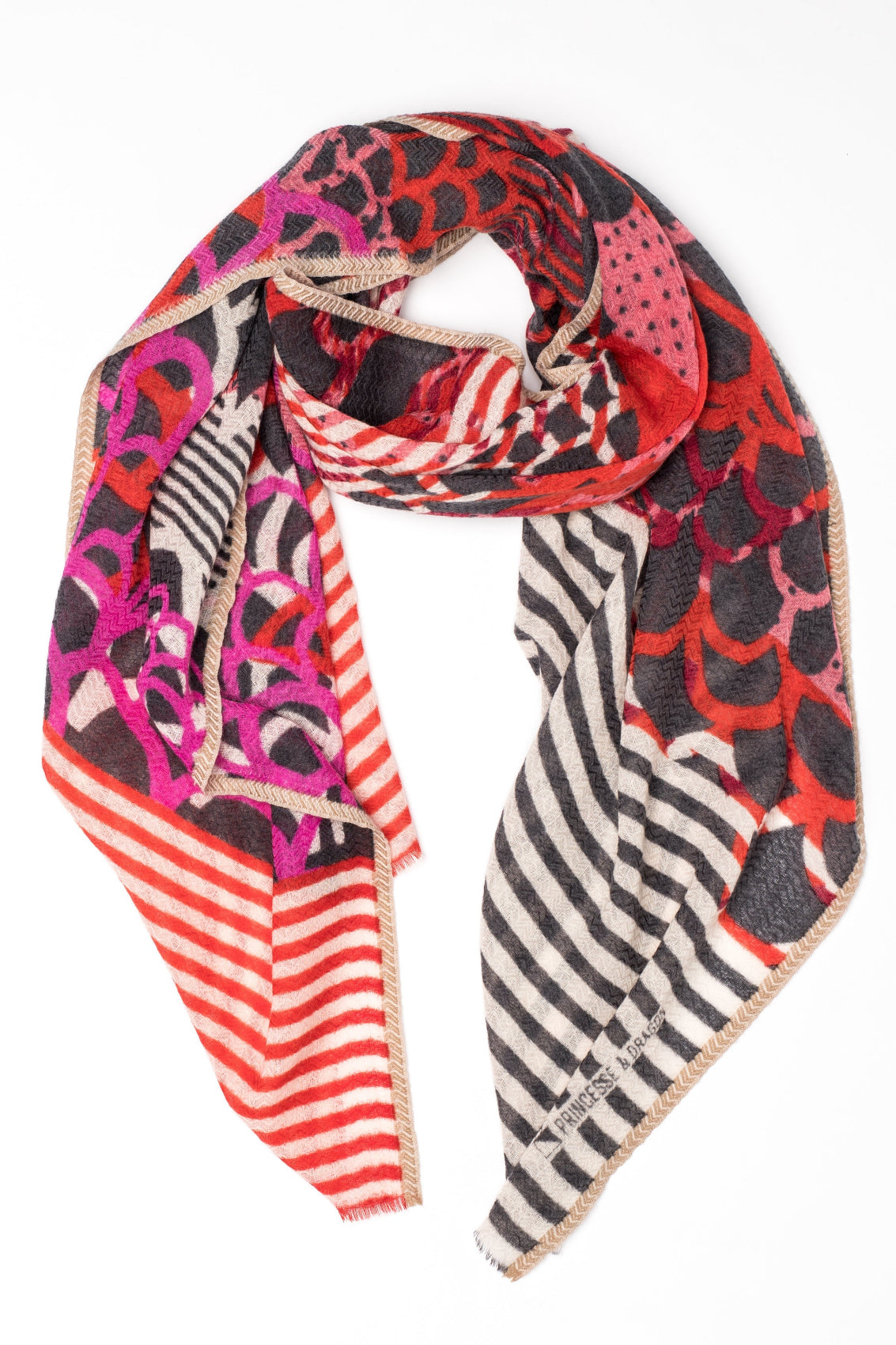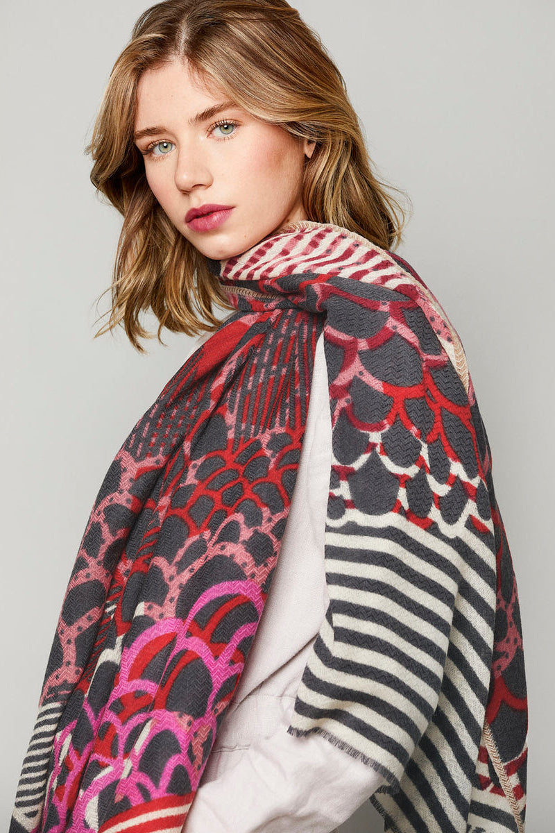 Le foulard Céleste est une grande écharpe en laine mérinos extra-fine, tissée avec un subtil relief et un motif de chevron. Les cinq couleurs qui le composent sont appliquées à la main, une couleur à la fois. Son format généreux en fait un accessoire polyvalent, idéal pour se protéger avec style tout au long de l'année. Les nuances de gris ajoutent une touche de sophistication à votre tenue. Découvrez cette écharpe douce et légère, votre allié incontournable pour toutes les saisons. Que ce soit pour les soirées fraîches de l'été ou pour vous protéger du froid en hiver, portez-la sur vos épaules ou enroulée autour de votre cou.