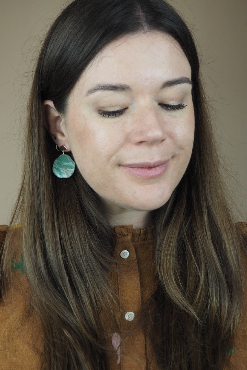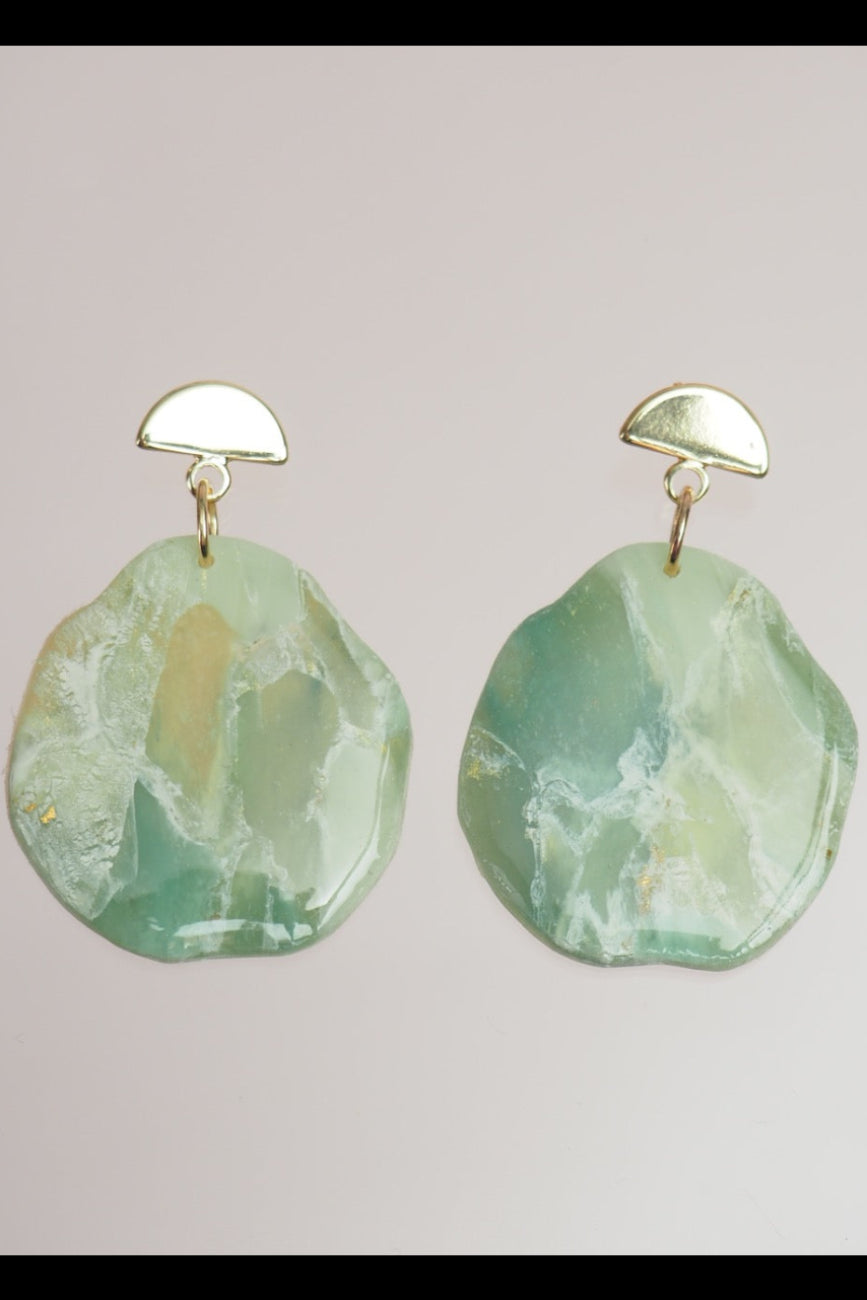 Boucles d'oreilles légères en argile polymère avec monture acier inoxydable hypoallergénique. Finition résine brillante qui met en valeur chaque détail. Chaque paire est unique et parfaitement adaptée aux oreilles sensibles.