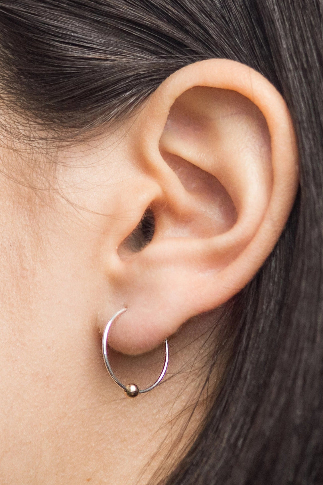 Release the post from the eyelet by gently squeezing the ring, then thread it through your ear piercing. Close them by passing the wire back through the eyelet. The small removable bead is gold-plated and slides freely along the ring. Sleeper earrings are more delicate to put on than post and butterfly earrings. To learn how to open and close them, click here .