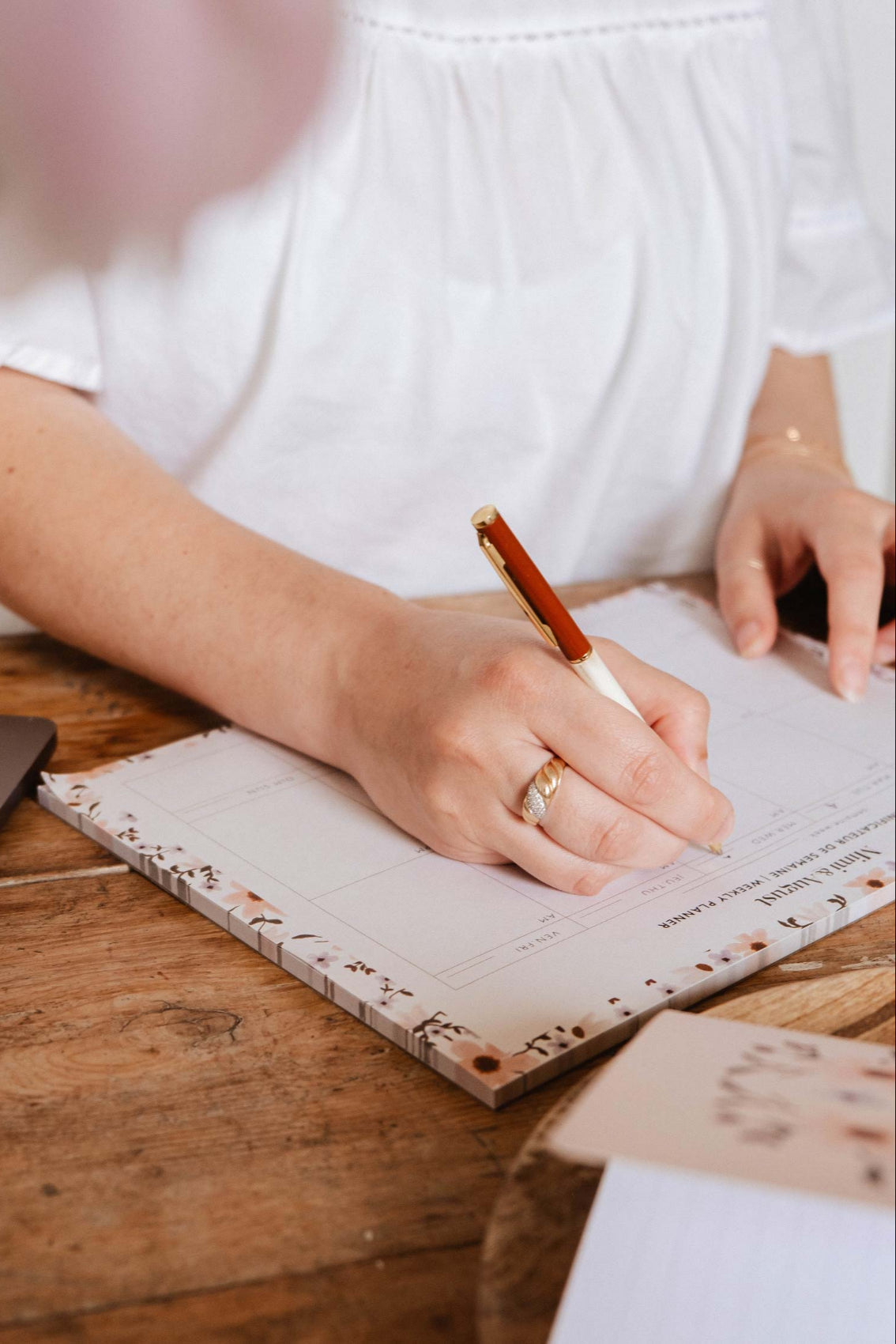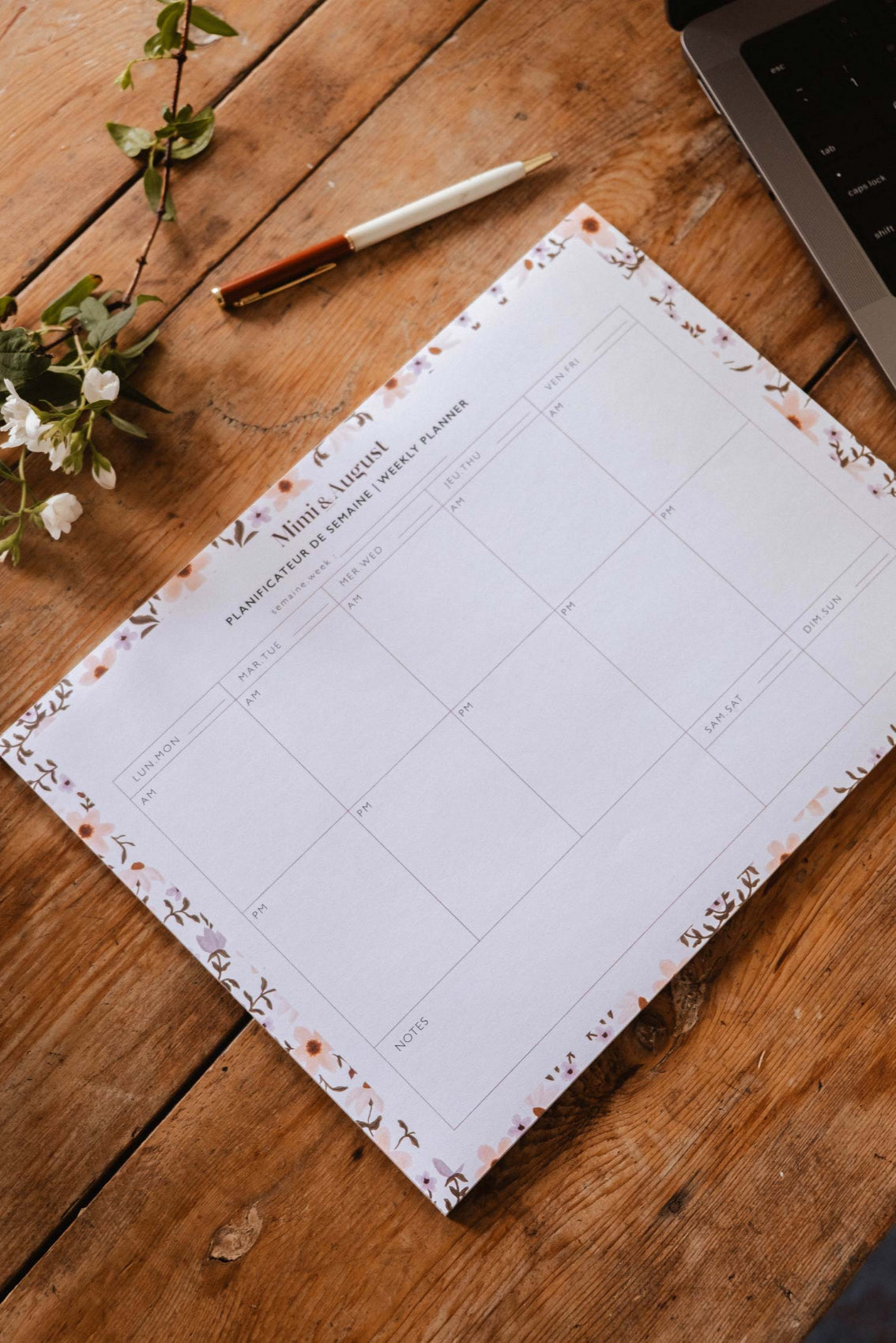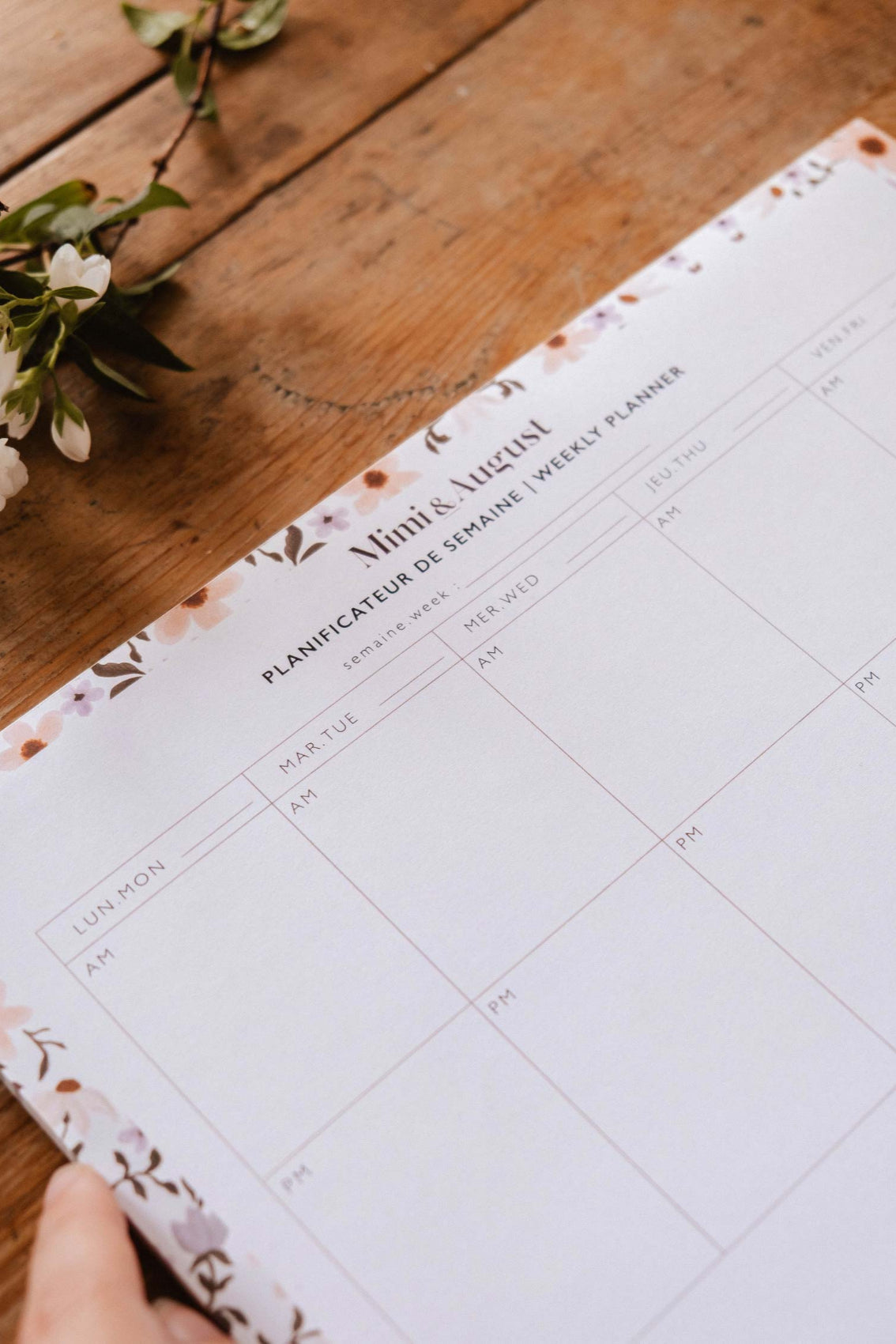 A sweet planner to beautifully organize your days. This 50-page weekly planner accompanies you each week with calm and clarity. It includes AM/PM sections for Monday through Friday, a space for the weekend, and your notes. Its pretty floral frame adds a poetic touch to your routine. Ideal for stationery lovers, organized minds (or those trying to be), or simply to add a little sweetness to planning.