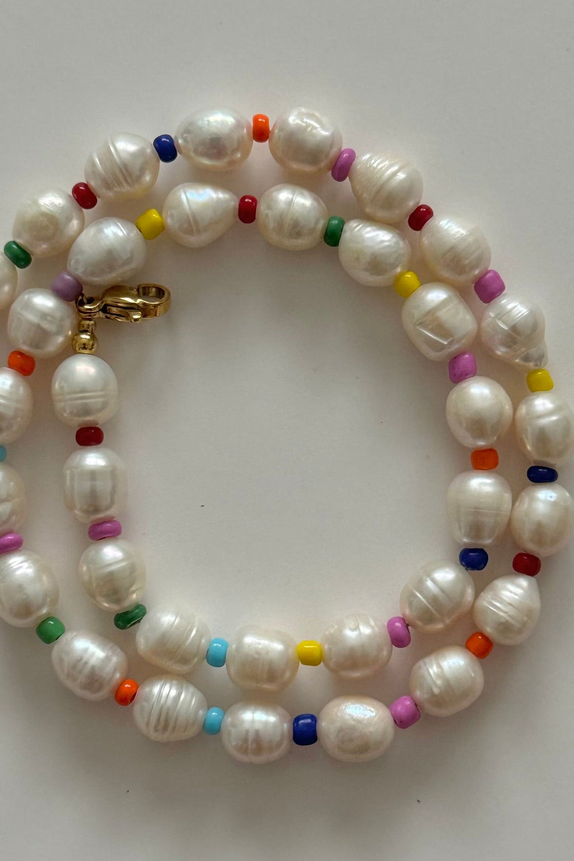 The combination of colorful beads and seed beads in this necklace creates an elegant and refined design, ideal for summer. The small beads add a touch of color and whimsy, while the seed beads lend a note of sophistication and glamour.