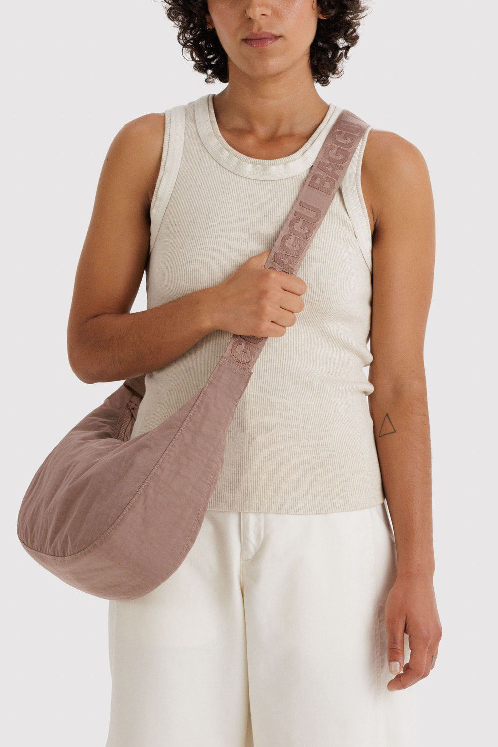 Pratique ne doit pas être ennuyeux. Le sac moyen en nylon Crescent est décontracté et assez grand pour transporter plus que l'essentiel. Portez-le en bandoulière ou en bandoulière pour une expérience mains libres. Complet avec deux poches intérieures qui facilitent l'organisation.