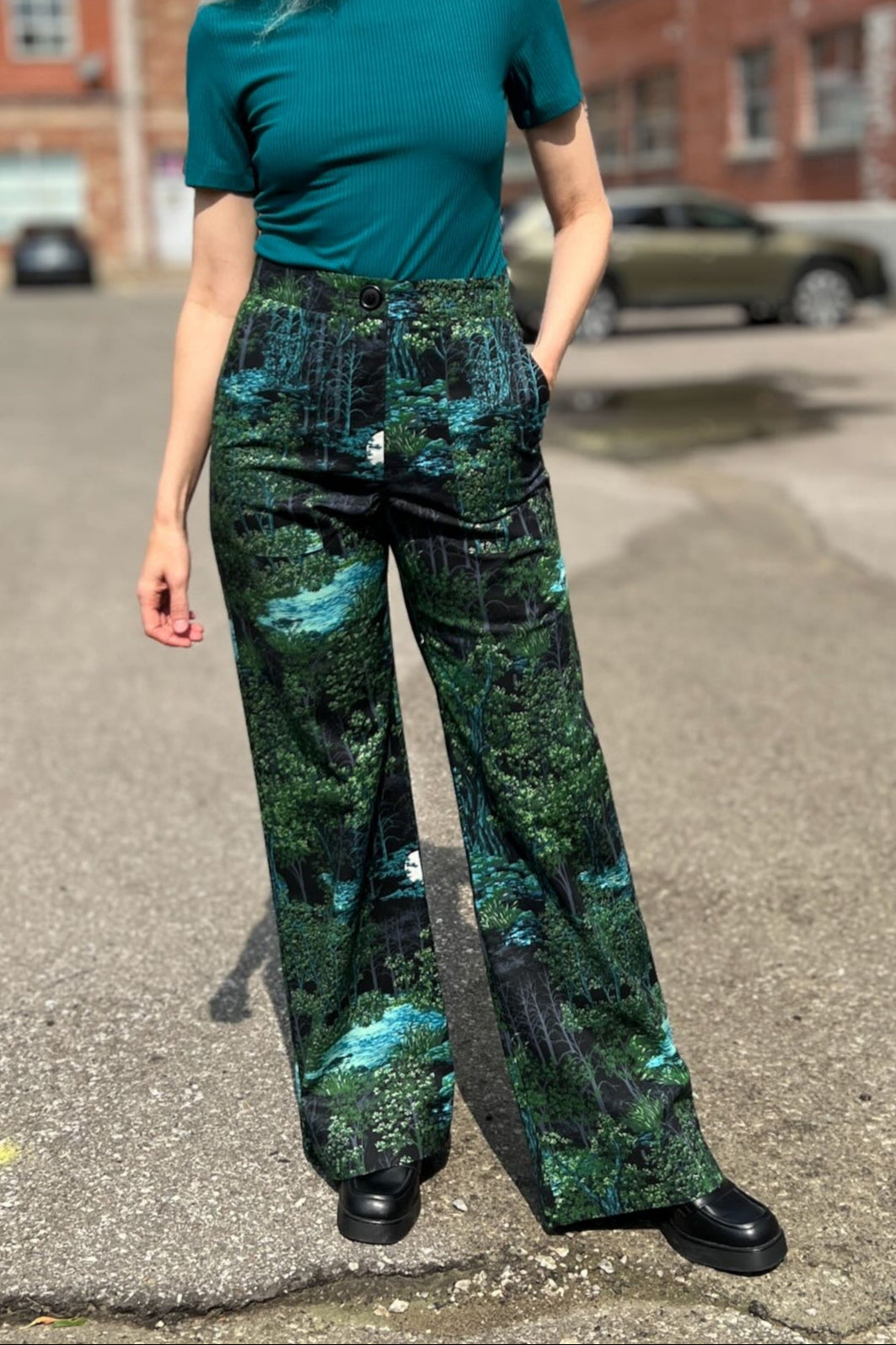 This fabric gives off a beautiful, dark gothic vibe, with its rich, green night forest scene and full moon.